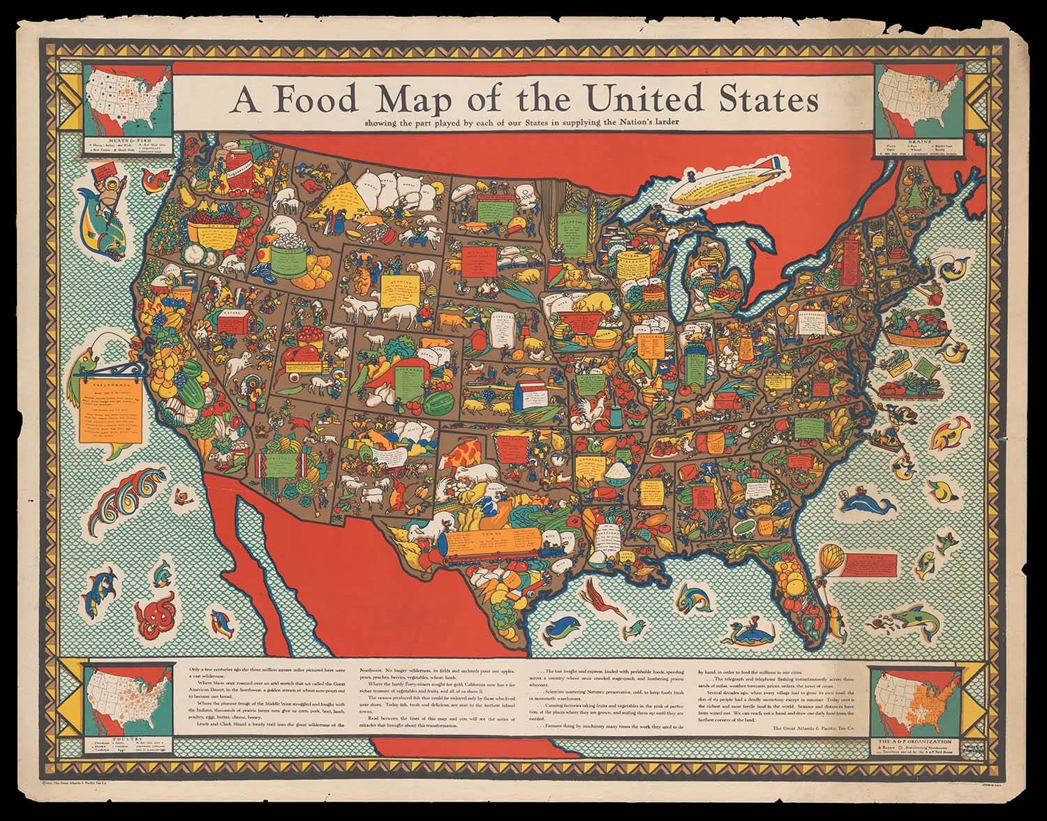 Great Atlantic and Pacific Tea Company, A Food Map of the United States showing the part played by each of our states in supplying the nation's larder, 1932. Teaching and Talking about Race with Maps at the Osher Map Library and Smith Center for ...