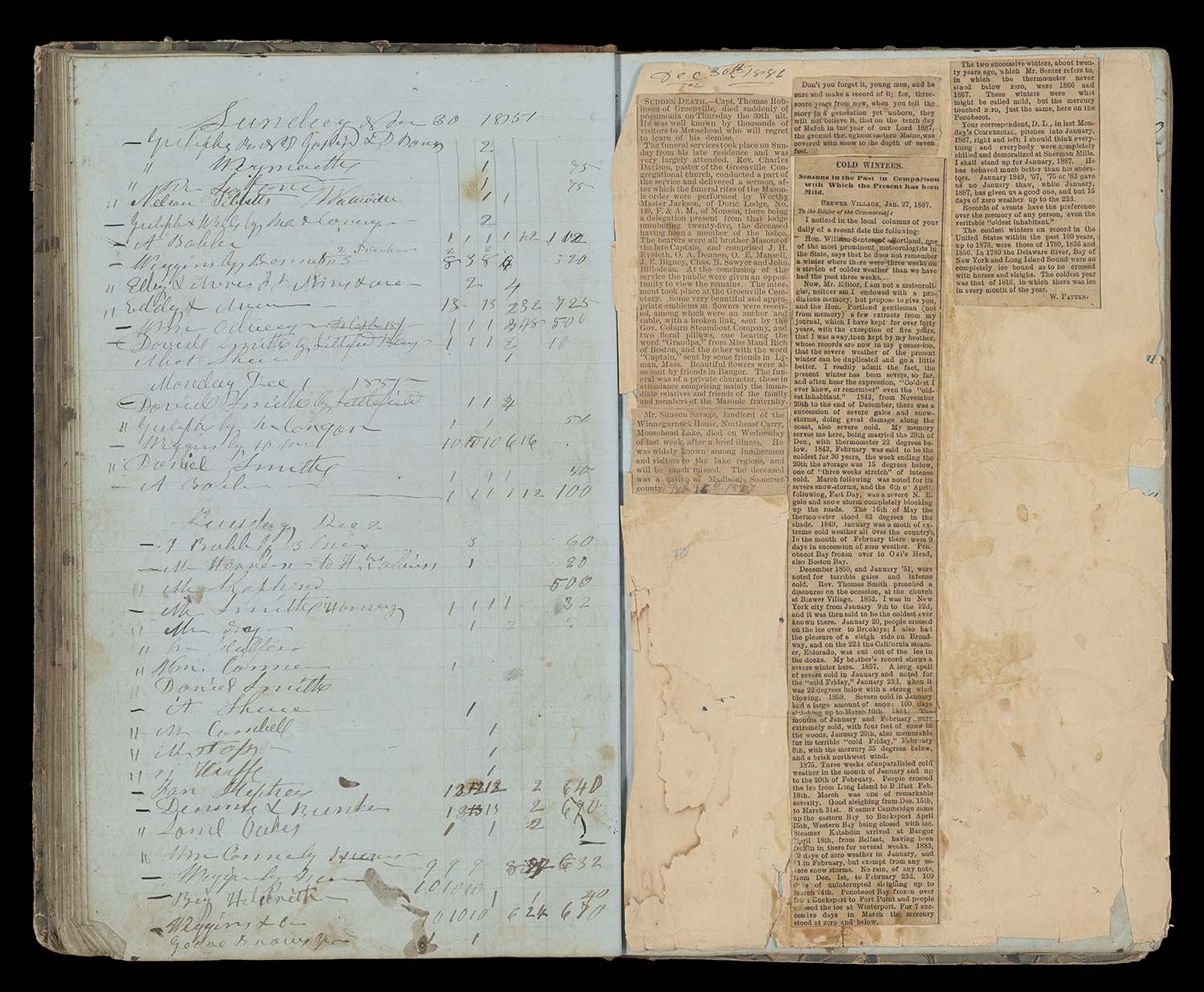 Name: [Newspaper clippings: obituaries of Capt. Thomas Robinson of Greenville, Maine, Dec. 30, 1886 and Mr. Simeon Savage, Northeast Carry, Moosehead Lake, Maine, Feb. 16, 1887. Discussing cold winters from 1816 to 1887, Brewer Village, Maine, Jan. 27, 1887.