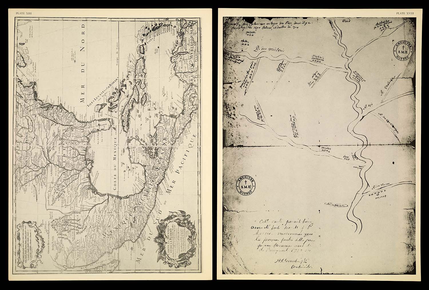 Name: [Plate XIII] Carte du Mexique et de la Floride des Terres Angloises et des Isles Antilles du Cours et des Environs de la Riviere de Mississipi. Dressee sur un grand nombre de memoires principalemt. sur ceux de Mrs. d'Iberville et le Sueur Par Guillaume De l'Isle Geographer de l'Academie Royale des Scieces. A Paris Chez l'Auteur sur le Quai de lHorloge Privilege du Roy por. 20. ans 1703 C. Simonneau fecit.[1942 copy of 1703 original]