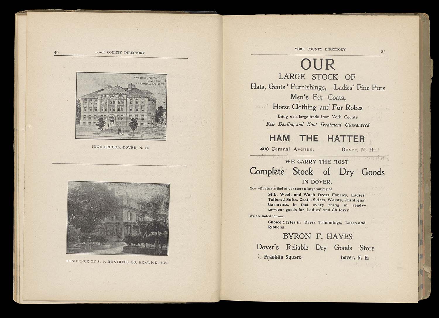 Name: High School, Dover, N.H. / Residence of S. P. Huntress, So. Berwick, Me. / [Ads]
