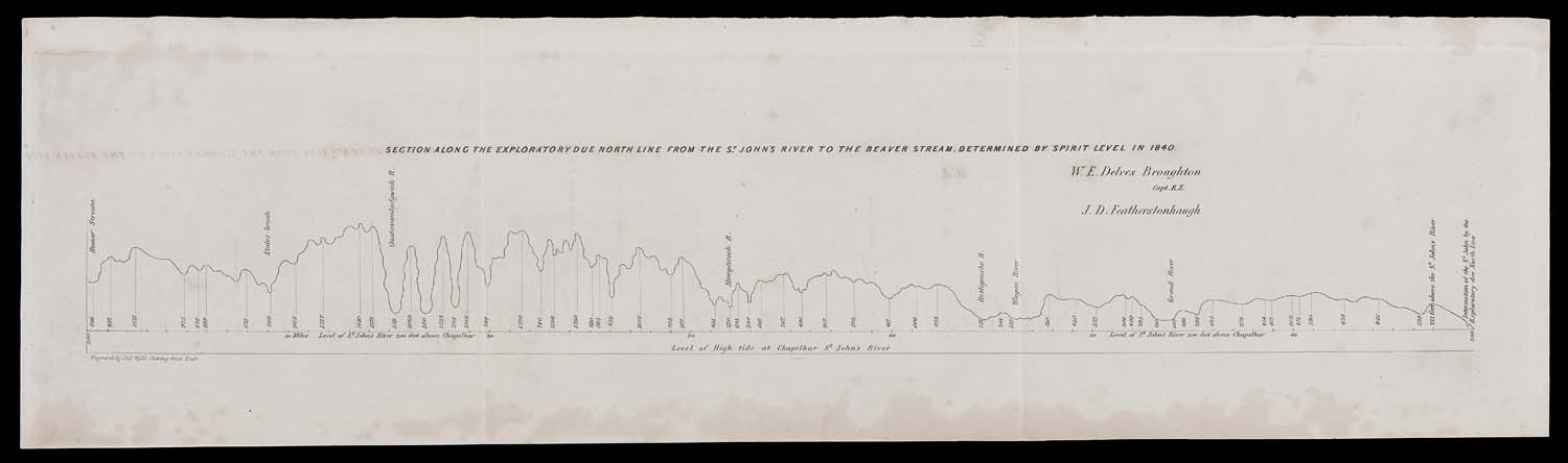 Name: Section along the exploratory due north line from the St. John's River to the Beaver Stream, determined by spirit level in 1840. W. E. Delves Broughton Capt. R. E. J. D. Featherstonehaugh