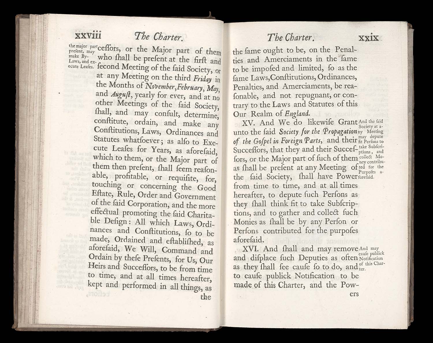 ↑ Parent: An historical account of the incorporated Society for the Propagation of the Gospel in Foreign Parts containing their foundation proceedings, and the success of their missionaries in the British colonies to the year 1728 by David Humphreys.