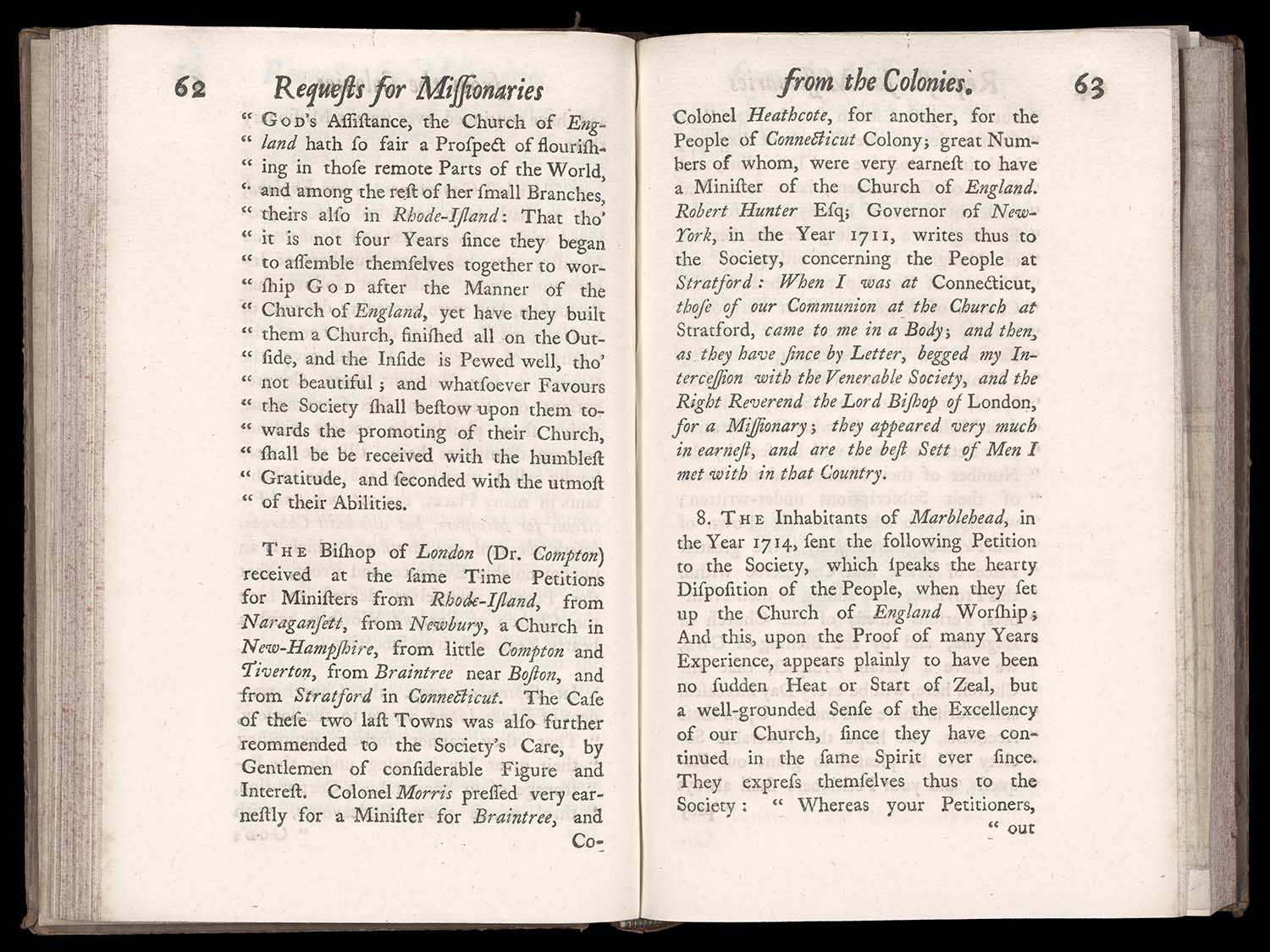 ↑ Parent: An historical account of the incorporated Society for the Propagation of the Gospel in Foreign Parts containing their foundation proceedings, and the success of their missionaries in the British colonies to the year 1728 by David Humphreys.