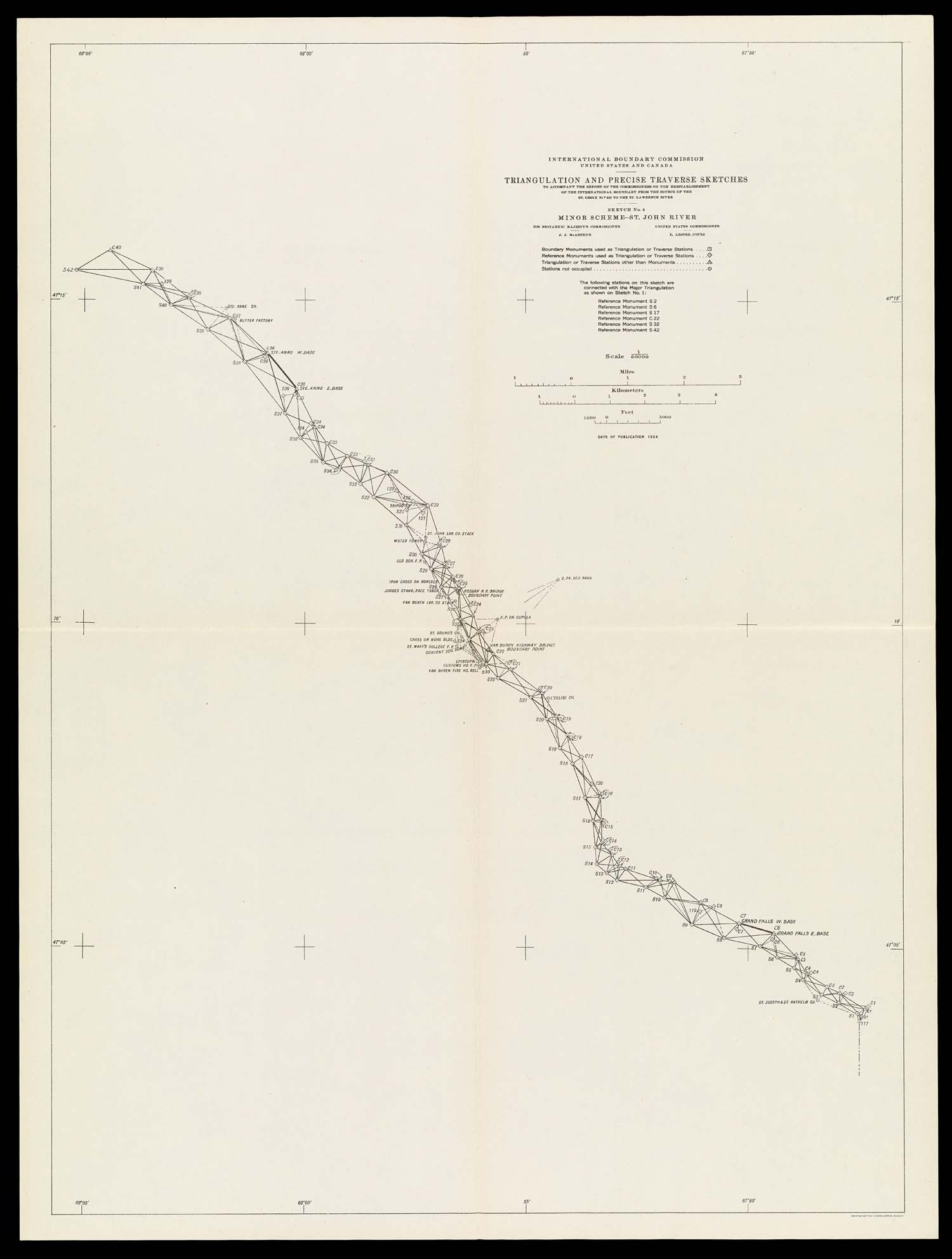 Name: International Boundary Commission United States and Canada Triangulation and precise traverse sketches to accompany the report of the commissioners on the reestablishment of the international boundary from the source of the St. Croix River to the St. Lawrence River Sketch No. 4 Minor Scheme - St. John River