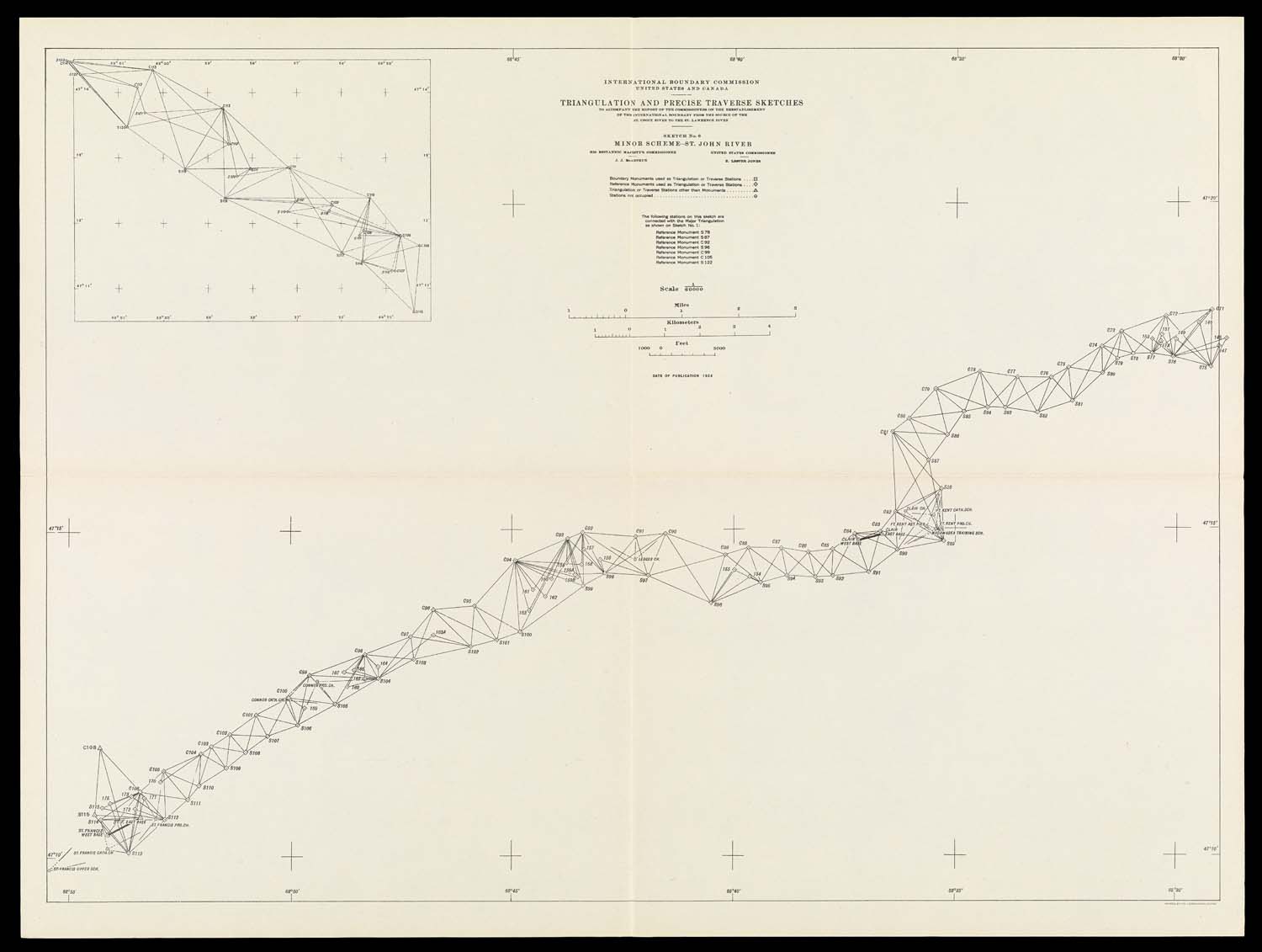 Name: International Boundary Commission United States and Canada Triangulation and precise traverse sketches to accompany the report of the commissioners on the reestablishment of the international boundary from the source of the St. Croix River to the St. Lawrence River Sketch No. 6 Minor Scheme - St. John River