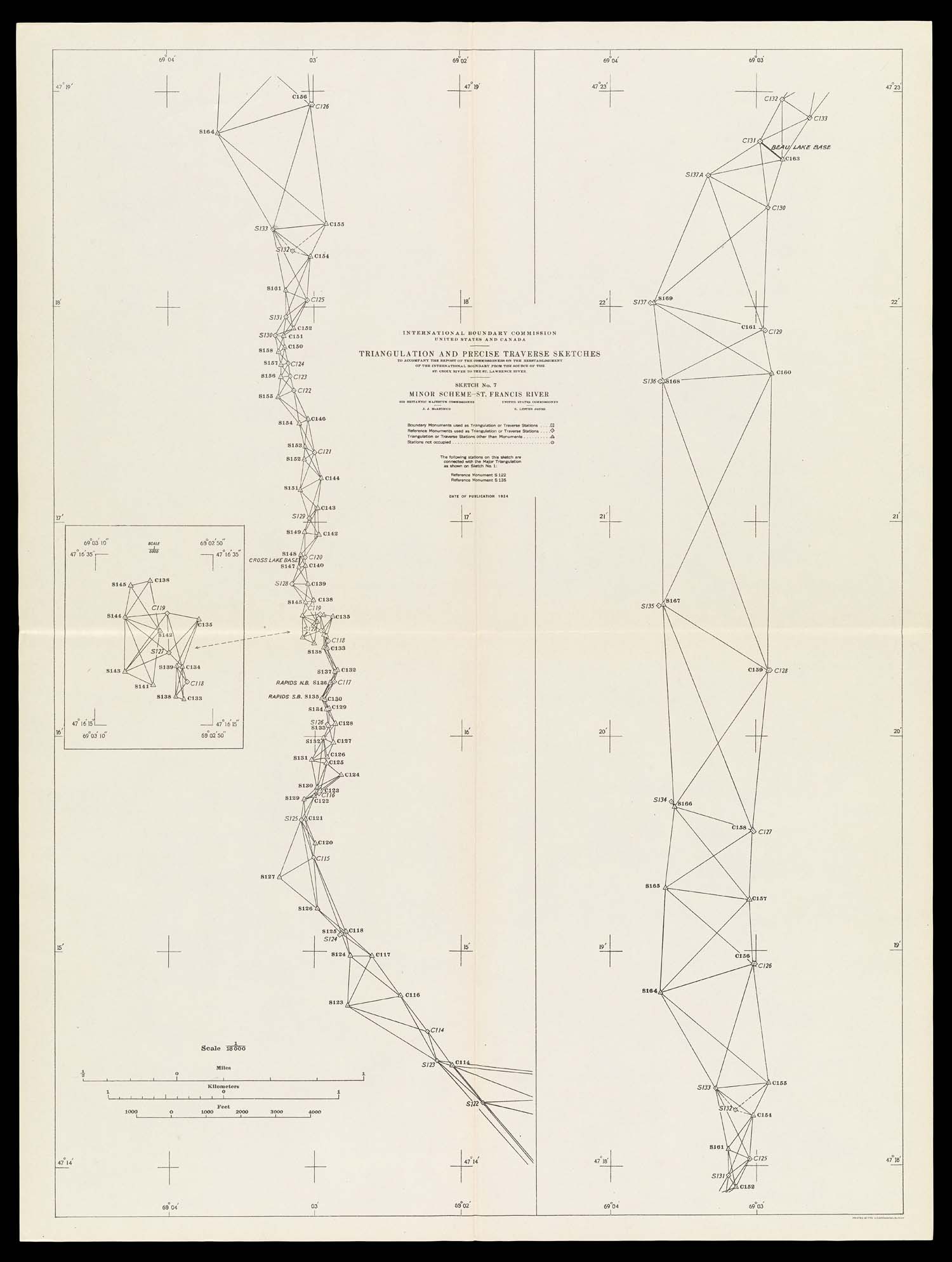 Name: International Boundary Commission United States and Canada Triangulation and precise traverse sketches to accompany the report of the commissioners on the reestablishment of the international boundary from the source of the St. Croix River to the St. Lawrence River Sketch No. 7 Minor Scheme - St. Francis River