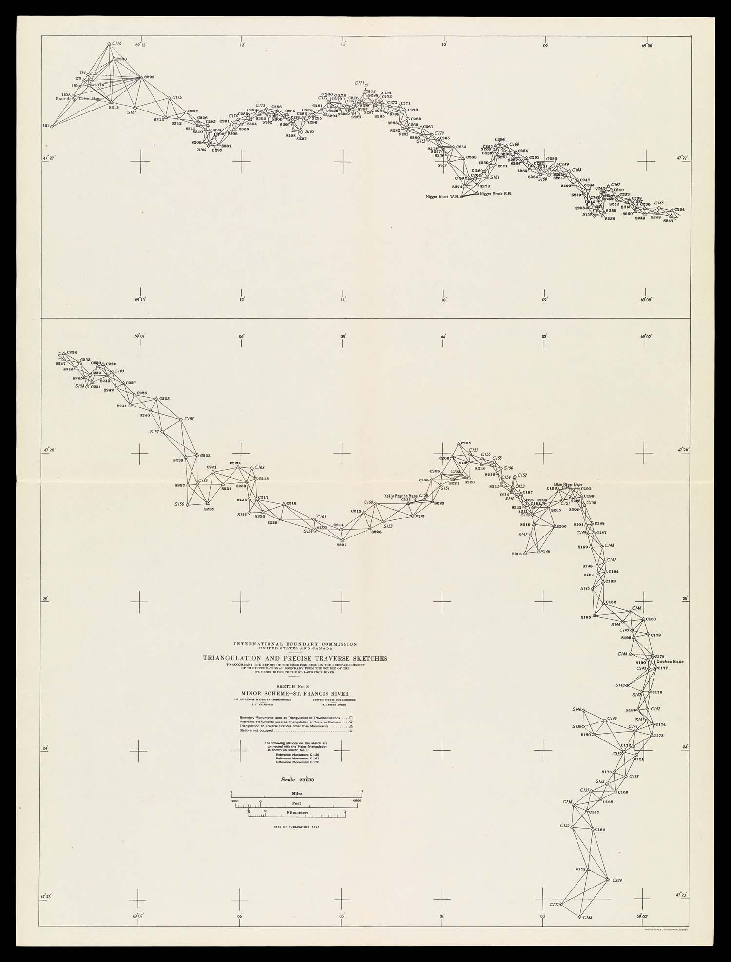 Name: International Boundary Commission United States and Canada Triangulation and precise traverse sketches to accompany the report of the commissioners on the reestablishment of the international boundary from the source of the St. Croix River to the St. Lawrence River Sketch No. 8 Minor Scheme - St. Francis River
