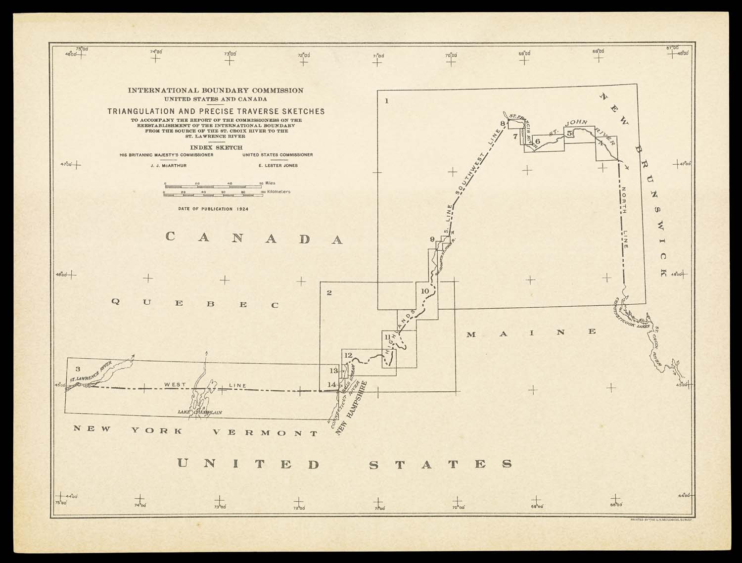 Name: International Boundary Commission United States and Canada Triangulation and precise traverse sketches to accompany the report of the commissioners on the reestablishment of the international boundary from the source of the St. Croix River to the St. Lawrence River