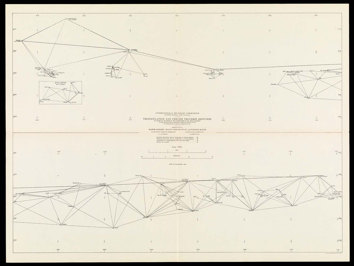 Name: International Boundary Commission United States and Canada Triangulation and precise traverse sketches to accompany the report of the commissioners on the reestablishment of the international boundary from the source of the St. Croix River to the St. Lawrence River Sketch No. 3 Major Scheme - Halls Stream to St. Lawrence River