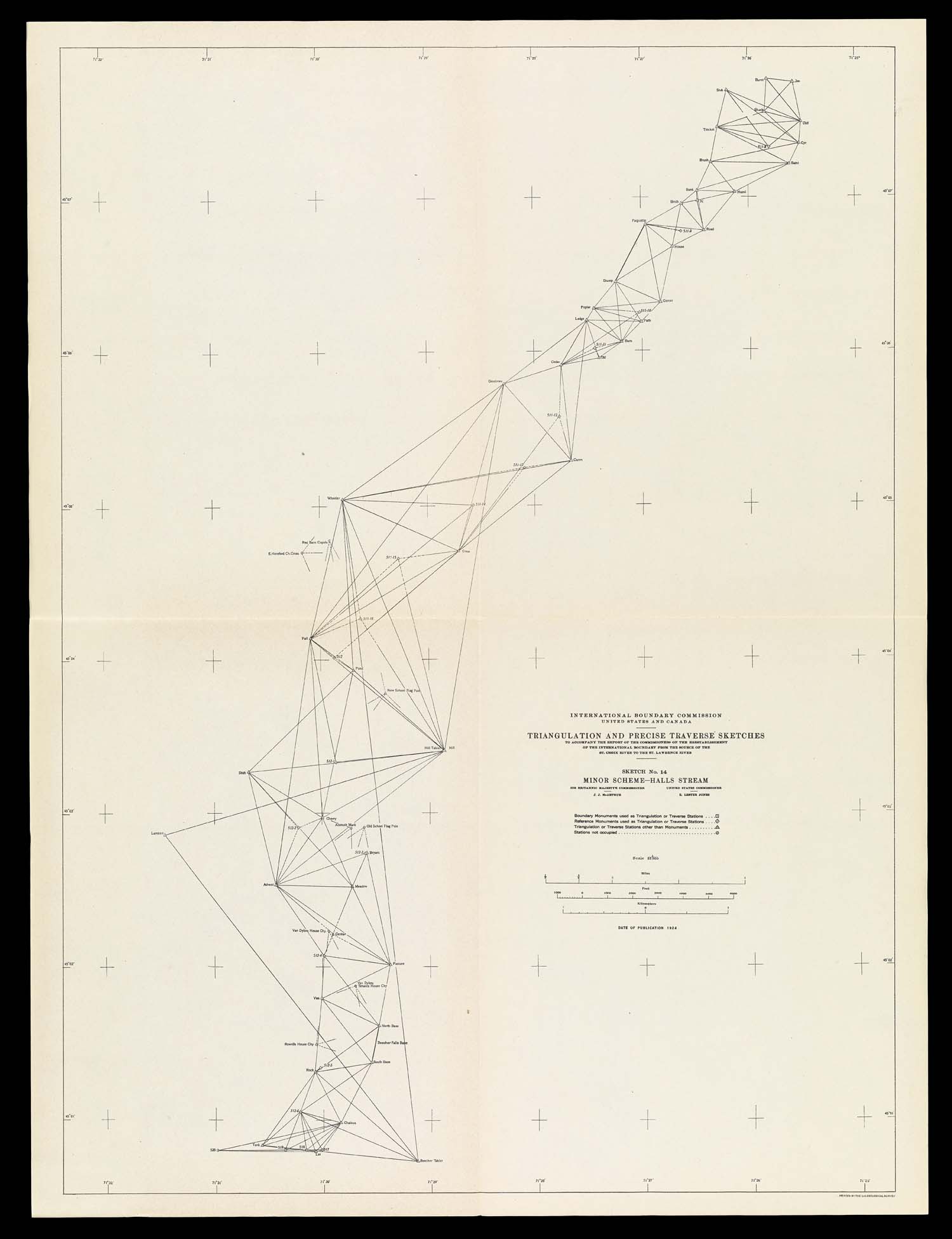 Name: International Boundary Commission United States and Canada Triangulation and precise traverse sketches to accompany the report of the commissioners on the reestablishment of the international boundary from the source of the St. Croix River to the St. Lawrence River Sketch No. 14 Minor Scheme - Halls Stream
