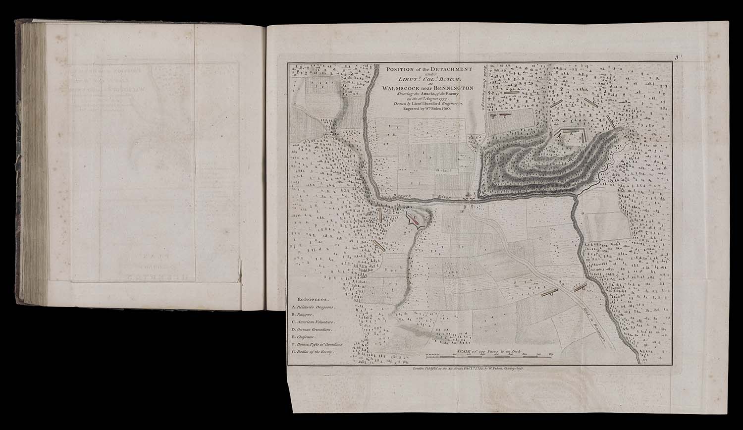 Full Title: Position of the Detachment under Lieutt. Col. Baum, Walmscock near Bennington Shewing the Attacks of the Enemy on the 16th August 1777. Drawn by Lieutt. Durnford Engineer. Engraved by Wm. Faden 1780.