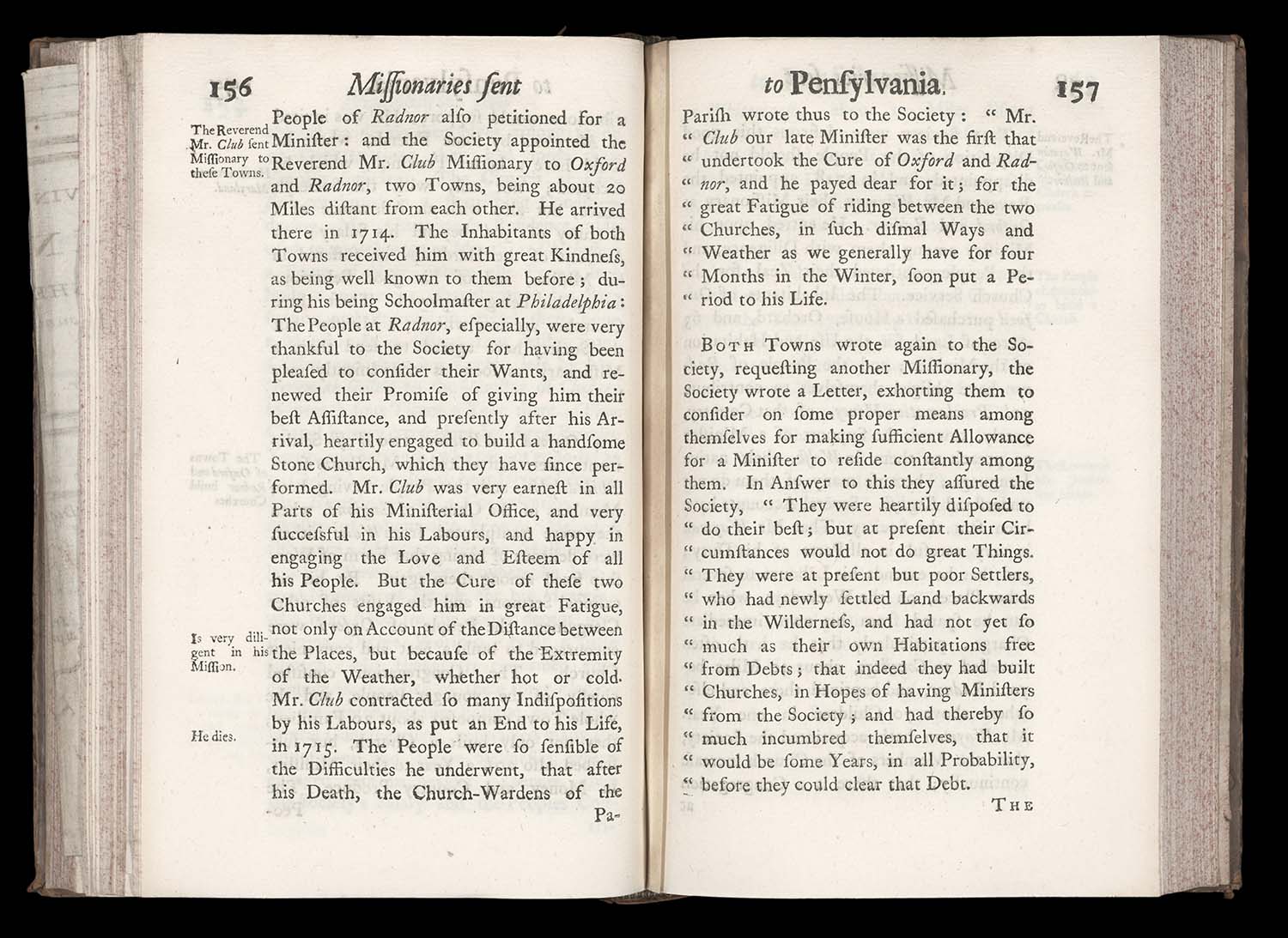 ↑ Parent: An historical account of the incorporated Society for the Propagation of the Gospel in Foreign Parts containing their foundation proceedings, and the success of their missionaries in the British colonies to the year 1728 by David Humphreys.