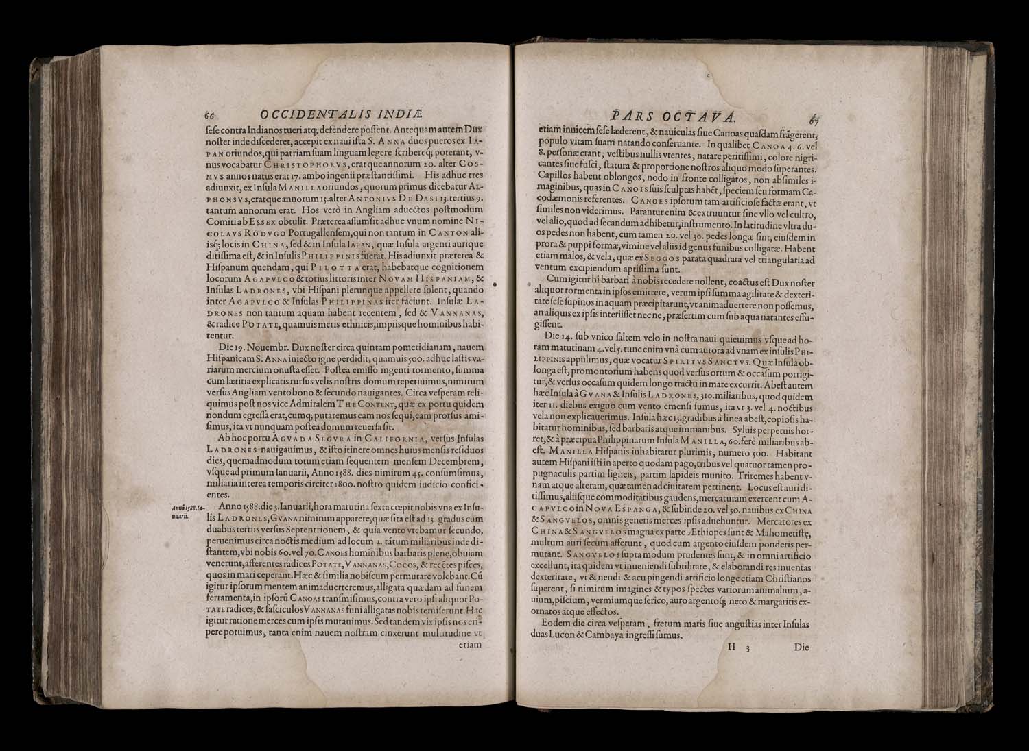 ↑ Parent: Admiranda Narratio Fida Tamen, de Commodis et incolarum ritibus Virginiae, nuper admodum ab Anglis, qui a Dn. Richardo Greinvile equestris ordinis viro eo in coloniam anno MDLXXXV deductisunt inuentae sumtus faciente dn vualtero Raleigh equestris ordinis viro fodinarv stanni praefecto ex auctoritate sernisimae reginae Angliae