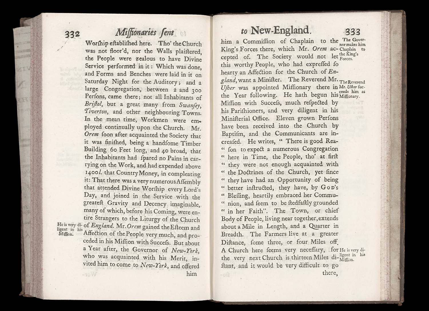 ↑ Parent: An historical account of the incorporated Society for the Propagation of the Gospel in Foreign Parts containing their foundation proceedings, and the success of their missionaries in the British colonies to the year 1728 by David Humphreys.