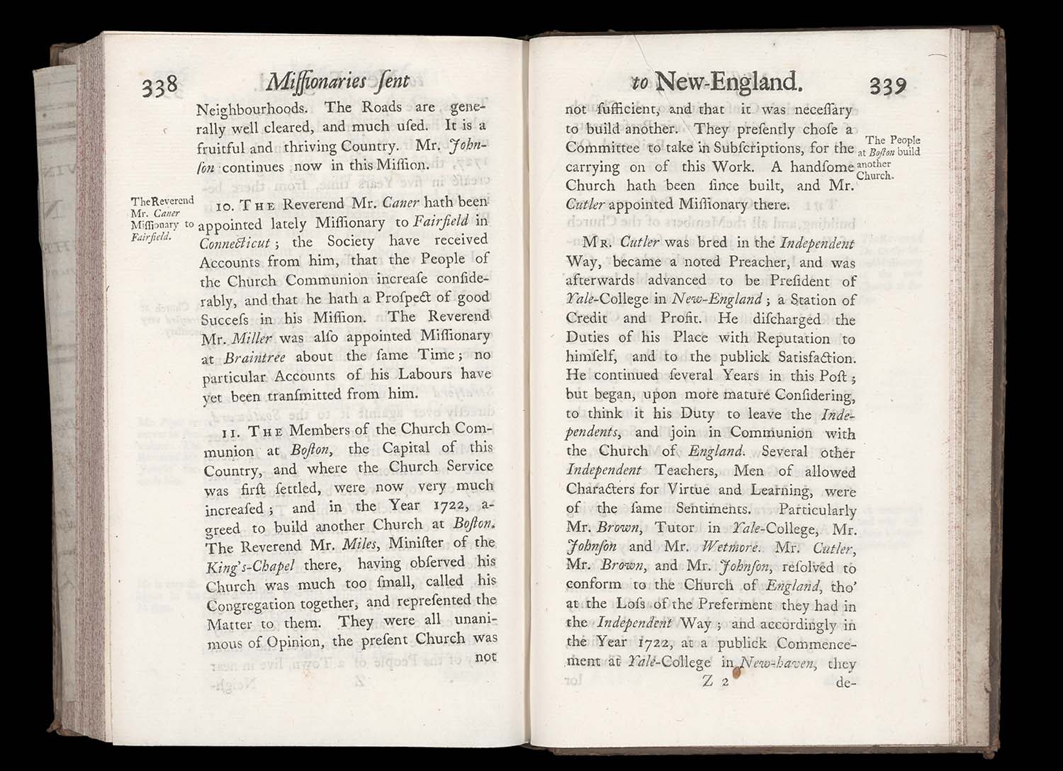 ↑ Parent: An historical account of the incorporated Society for the Propagation of the Gospel in Foreign Parts containing their foundation proceedings, and the success of their missionaries in the British colonies to the year 1728 by David Humphreys.