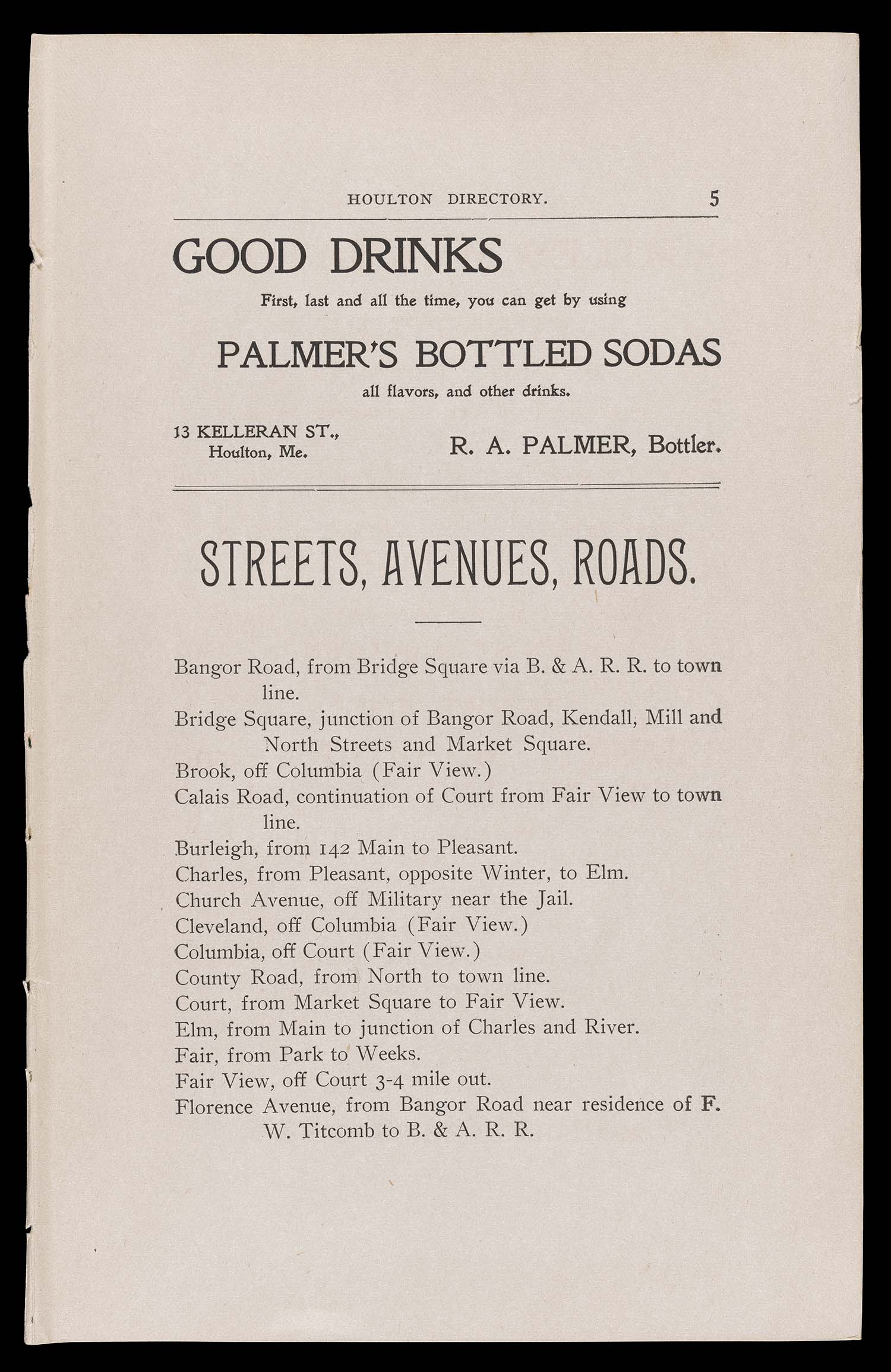 Name: The Houlton Directory. Streets, Avenues, Roads.
