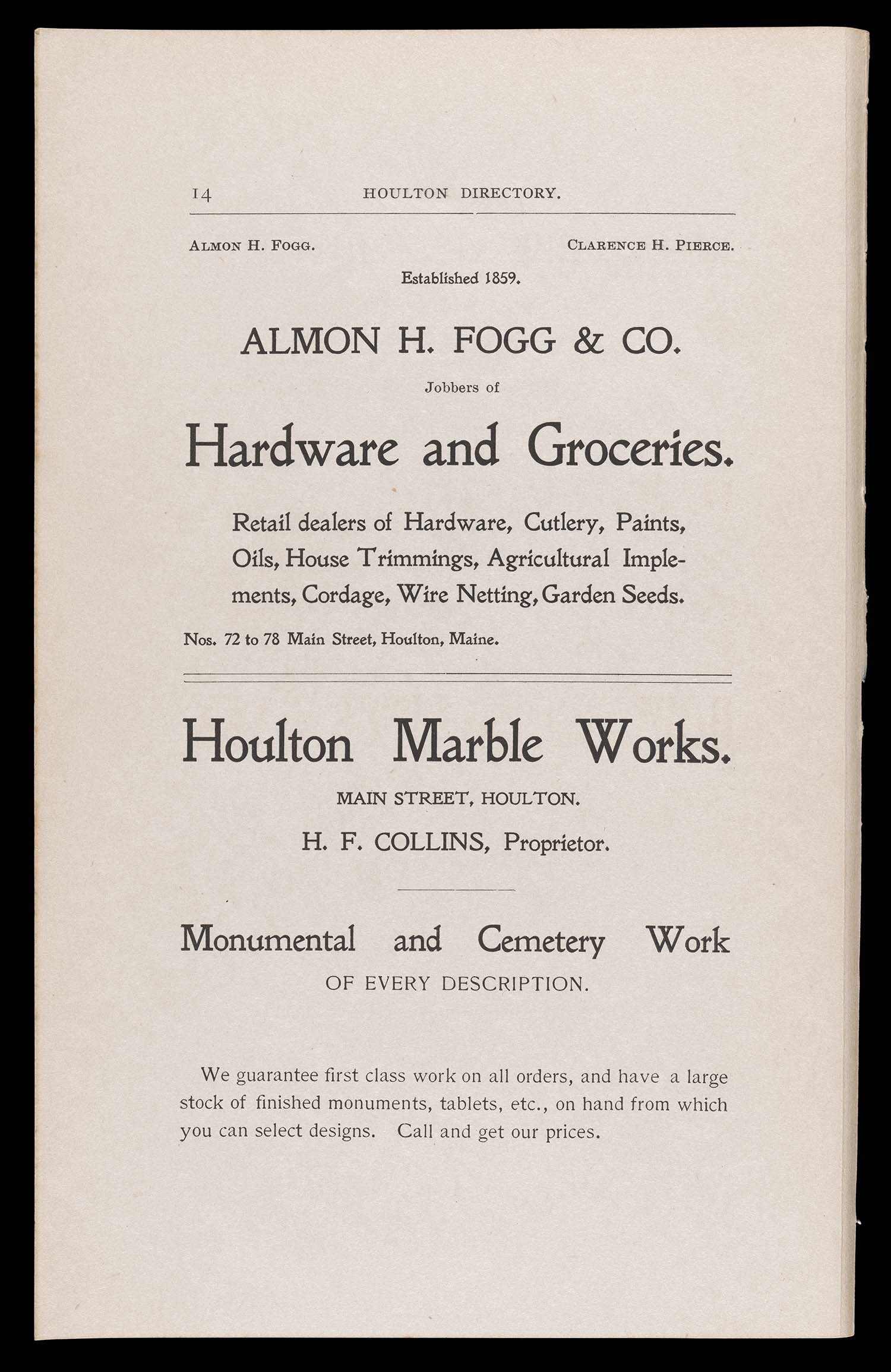 ↑ Parent: The Houlton directory, 1900 : a complete index to the residents, business, streets, etc. of the town of Houlton, Aroostook County, Maine with other useful information