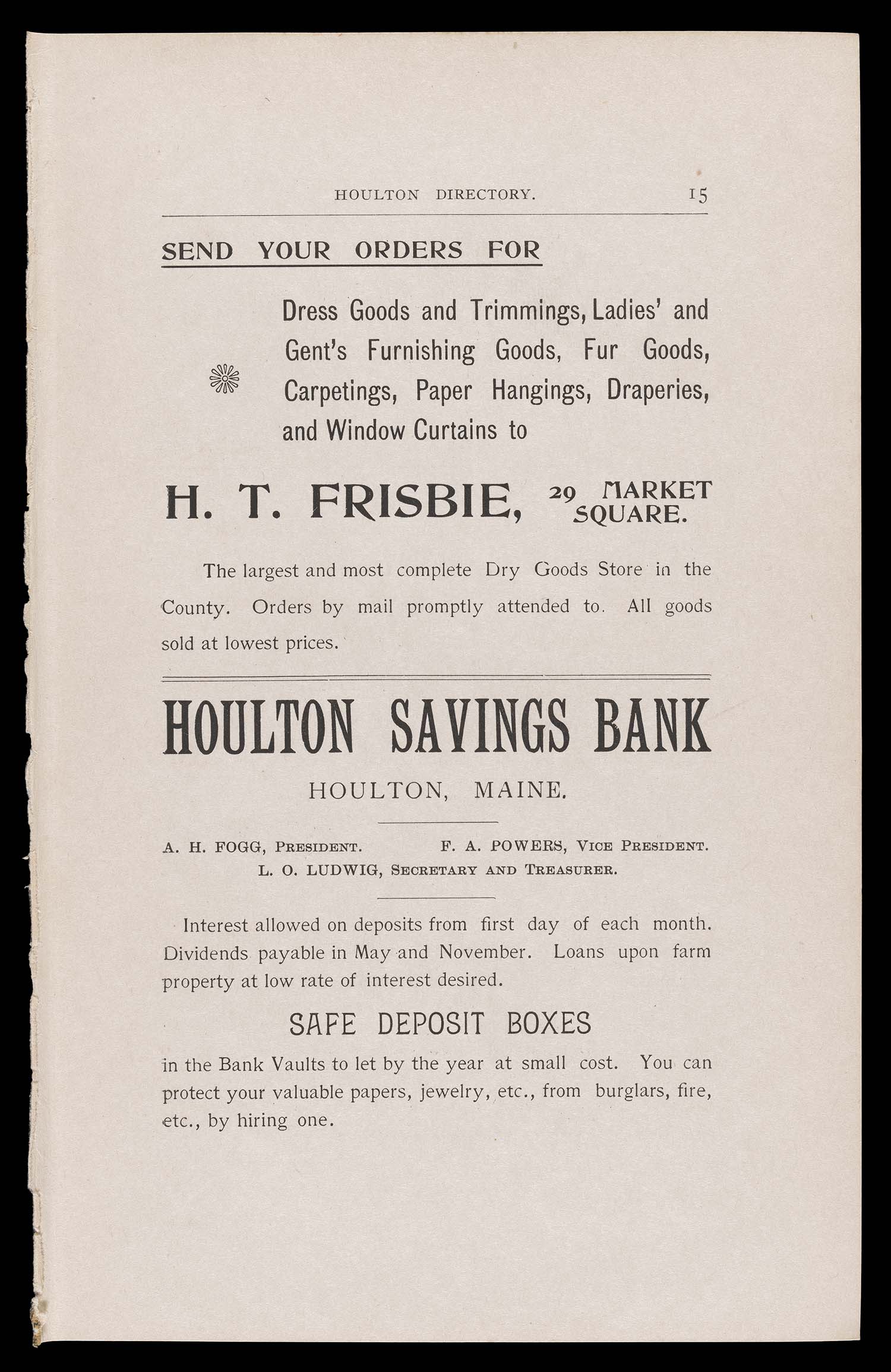 ↑ Parent: The Houlton directory, 1900 : a complete index to the residents, business, streets, etc. of the town of Houlton, Aroostook County, Maine with other useful information