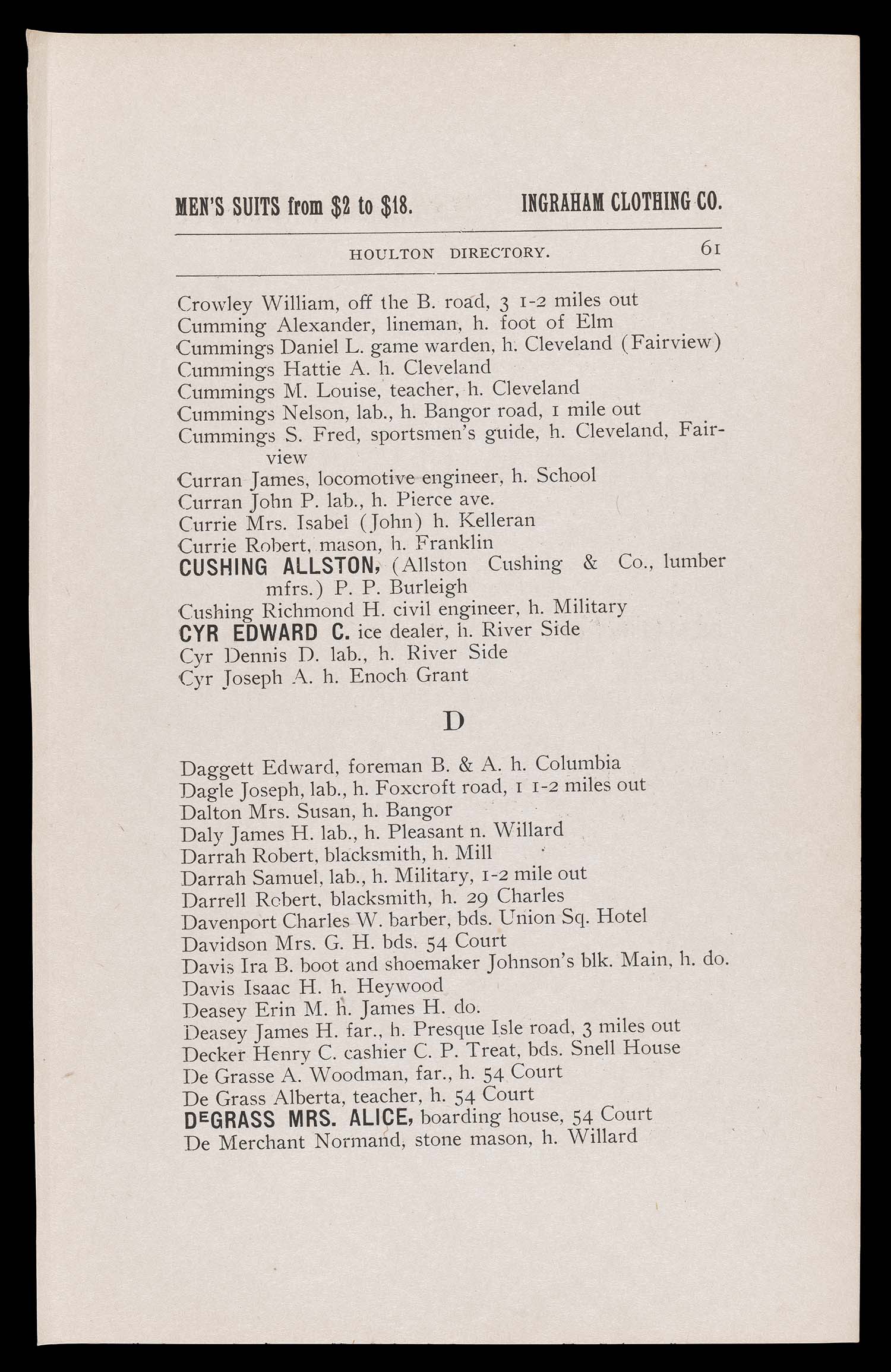 ↑ Parent: The Houlton directory, 1900 : a complete index to the residents, business, streets, etc. of the town of Houlton, Aroostook County, Maine with other useful information