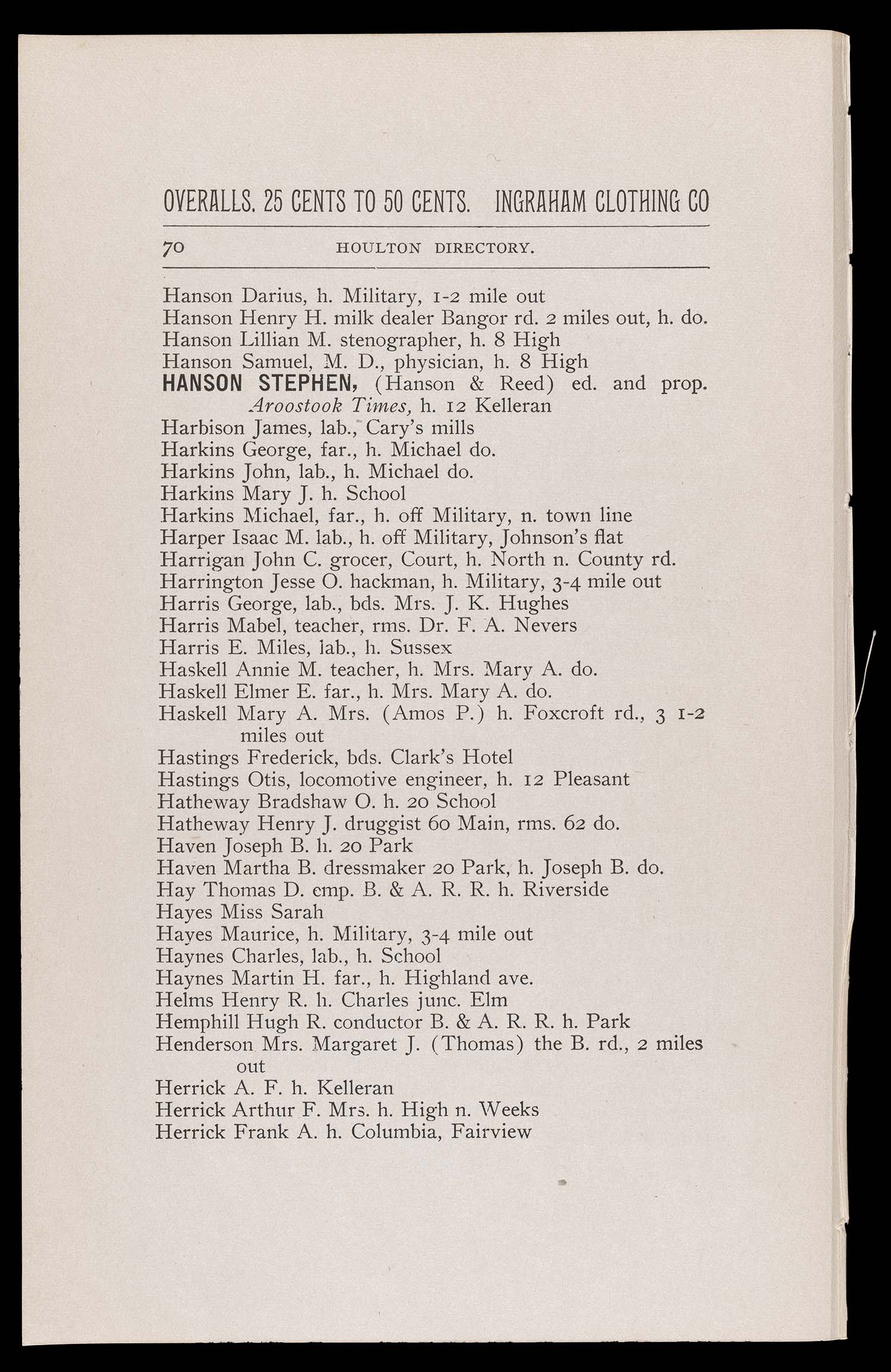 ↑ Parent: The Houlton directory, 1900 : a complete index to the residents, business, streets, etc. of the town of Houlton, Aroostook County, Maine with other useful information