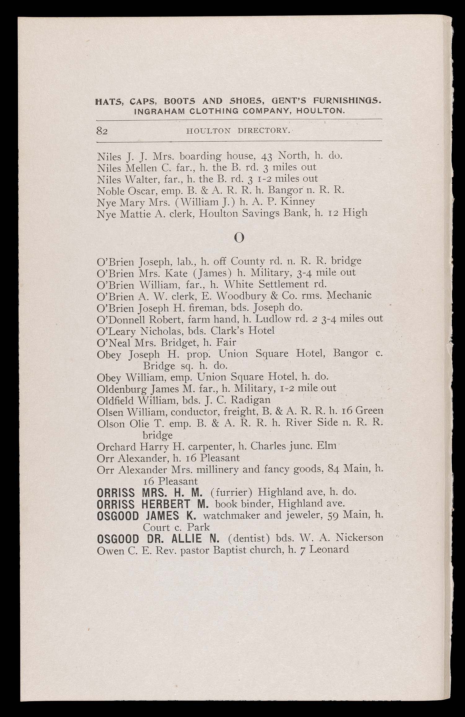 ↑ Parent: The Houlton directory, 1900 : a complete index to the residents, business, streets, etc. of the town of Houlton, Aroostook County, Maine with other useful information