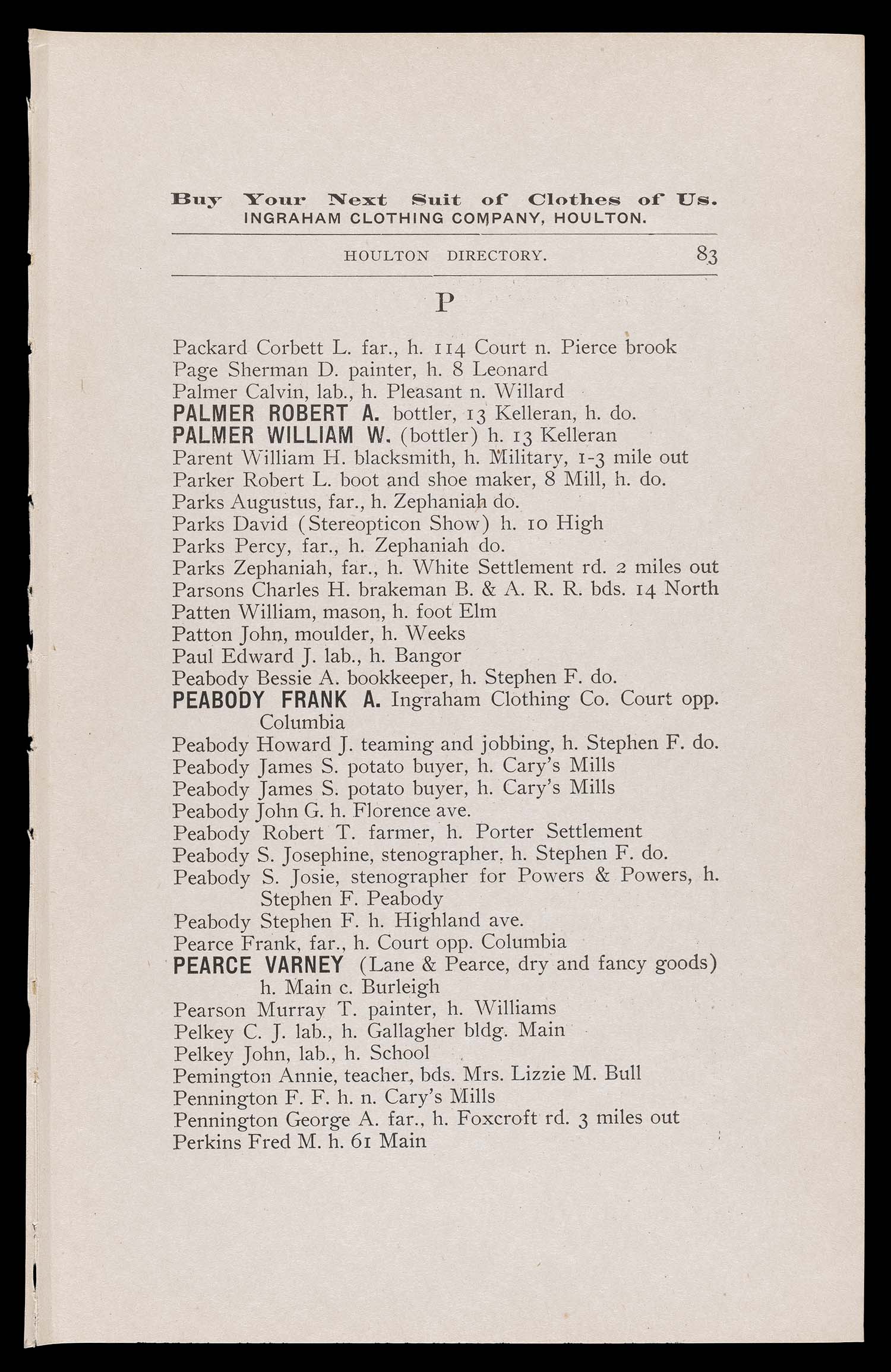 ↑ Parent: The Houlton directory, 1900 : a complete index to the residents, business, streets, etc. of the town of Houlton, Aroostook County, Maine with other useful information