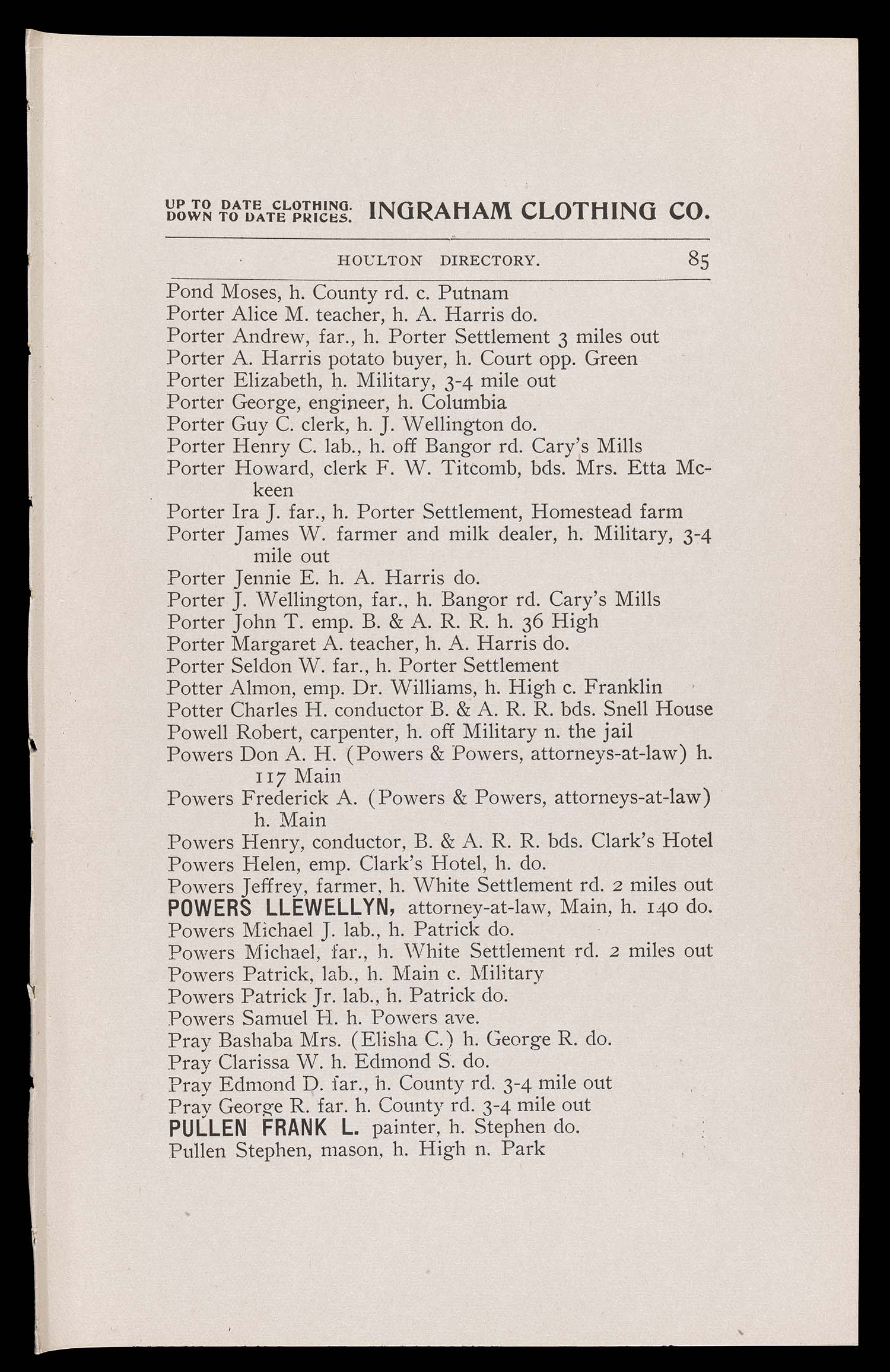 ↑ Parent: The Houlton directory, 1900 : a complete index to the residents, business, streets, etc. of the town of Houlton, Aroostook County, Maine with other useful information
