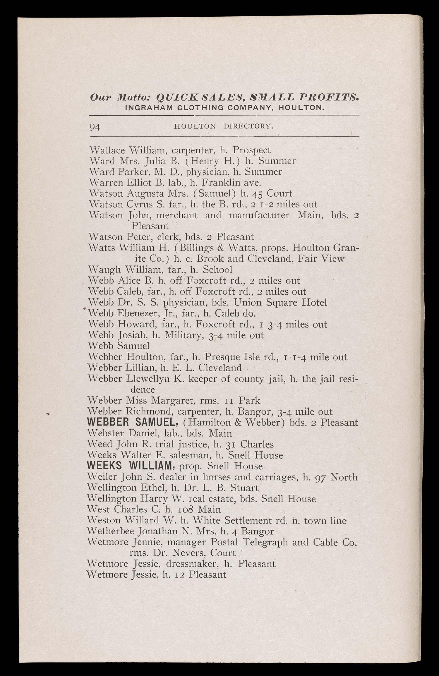↑ Parent: The Houlton directory, 1900 : a complete index to the residents, business, streets, etc. of the town of Houlton, Aroostook County, Maine with other useful information