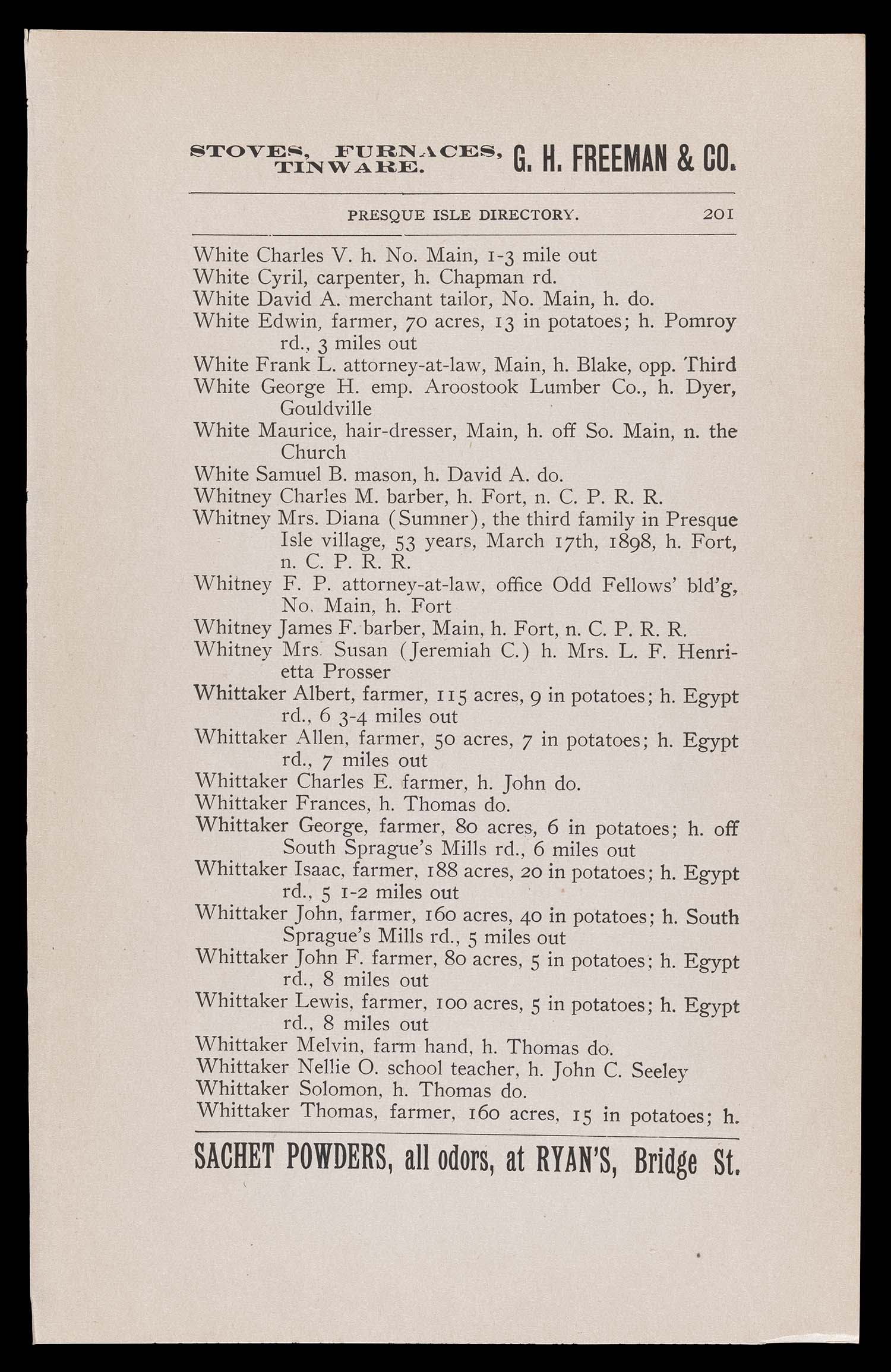 ↑ Parent: The Houlton directory, 1900 : a complete index to the residents, business, streets, etc. of the town of Houlton, Aroostook County, Maine with other useful information