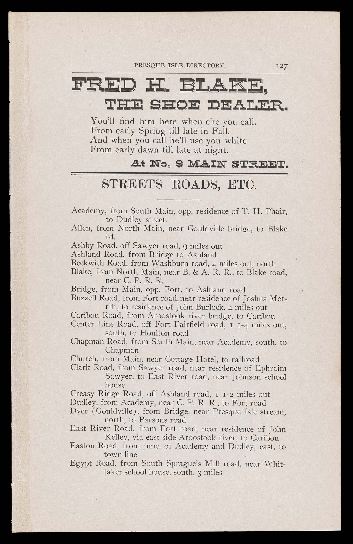 Name: The Presque Isle Directory. Streets Roads, etc.