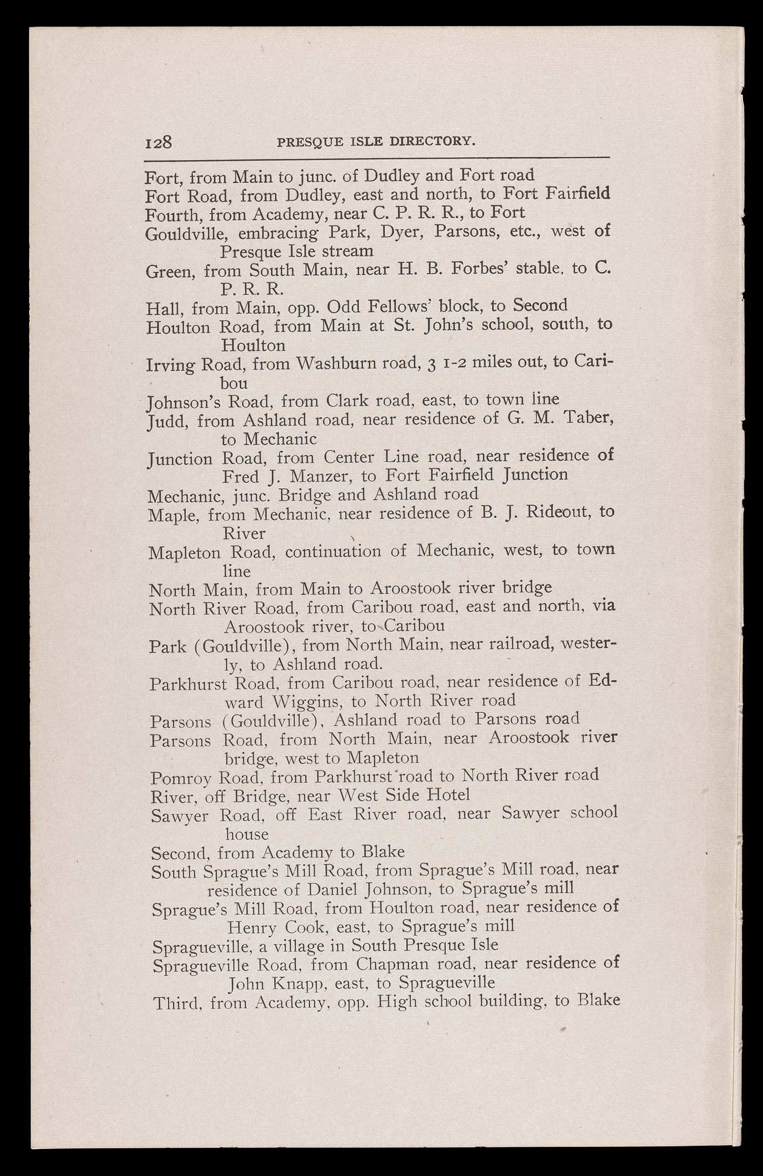 Name: The Presque Isle Directory. Streets Roads, etc.