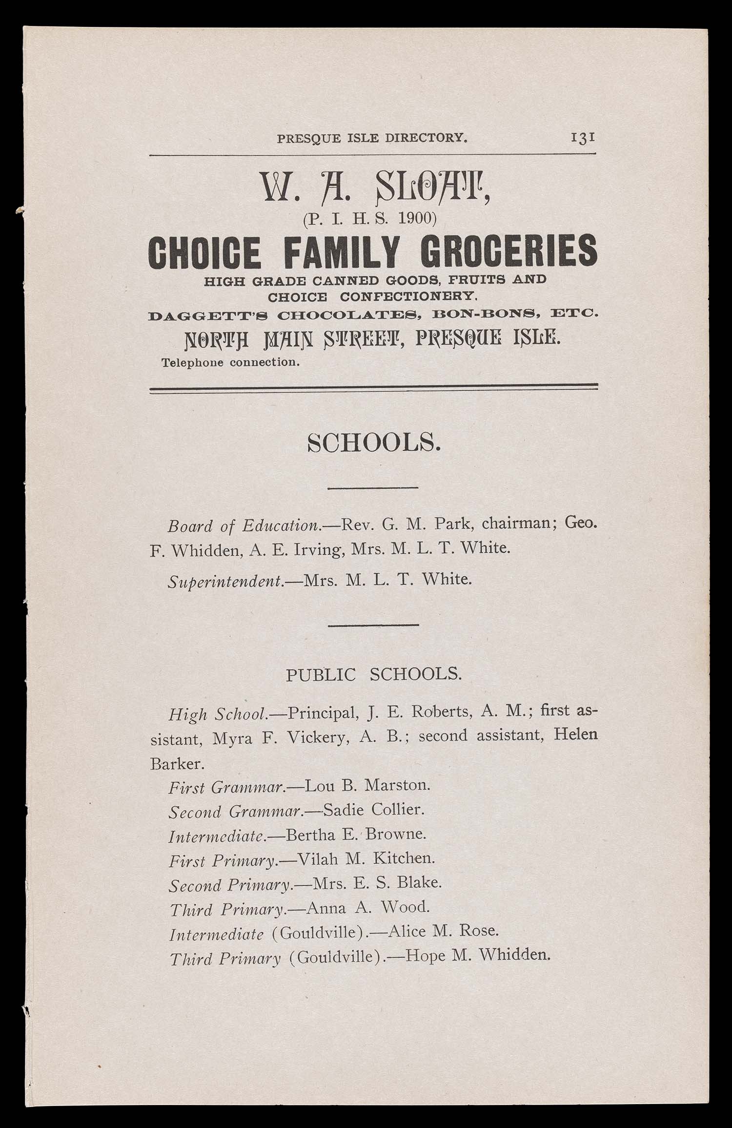 ↑ Parent: The Houlton directory, 1900 : a complete index to the residents, business, streets, etc. of the town of Houlton, Aroostook County, Maine with other useful information