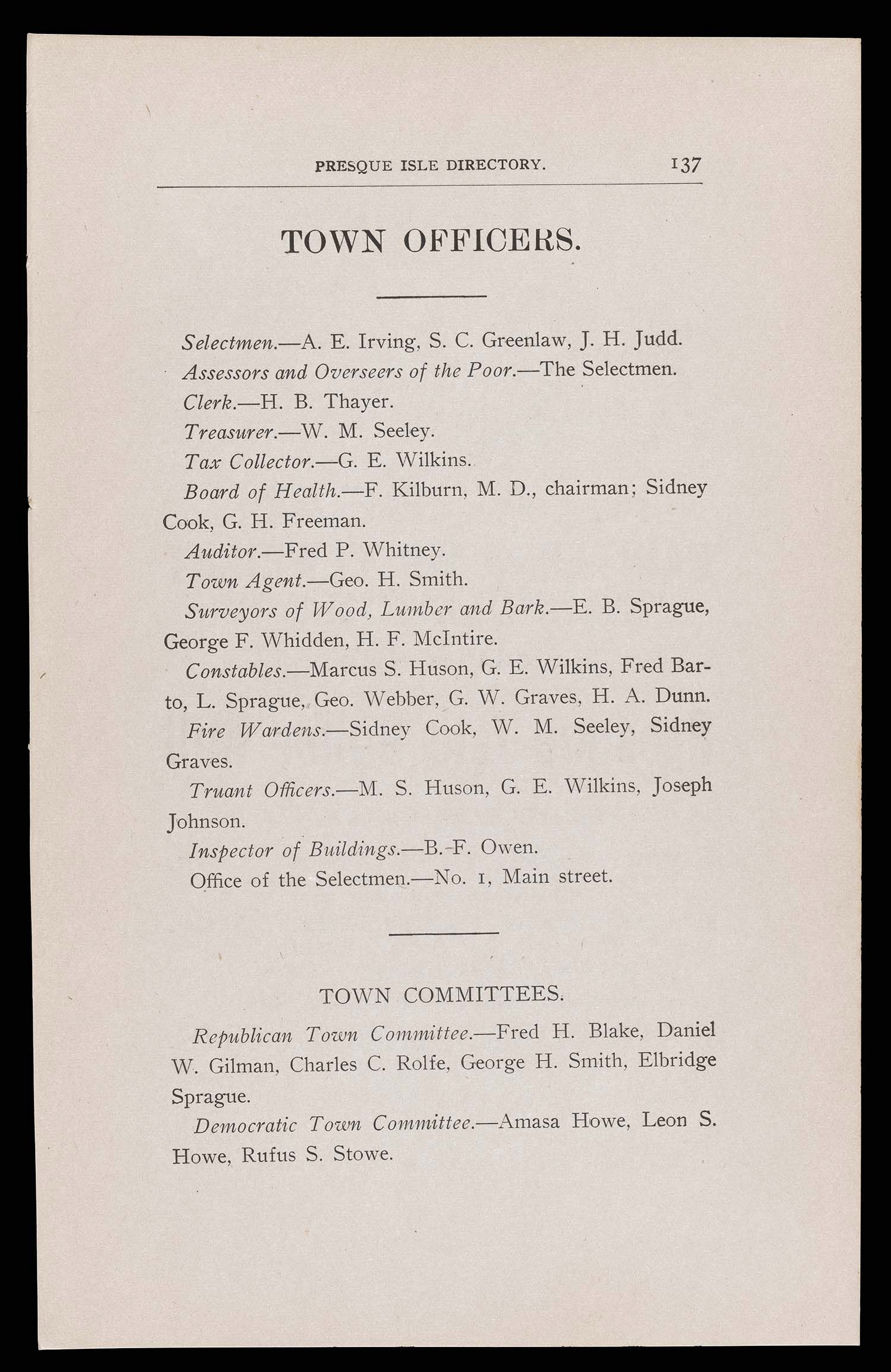 ↑ Parent: The Houlton directory, 1900 : a complete index to the residents, business, streets, etc. of the town of Houlton, Aroostook County, Maine with other useful information
