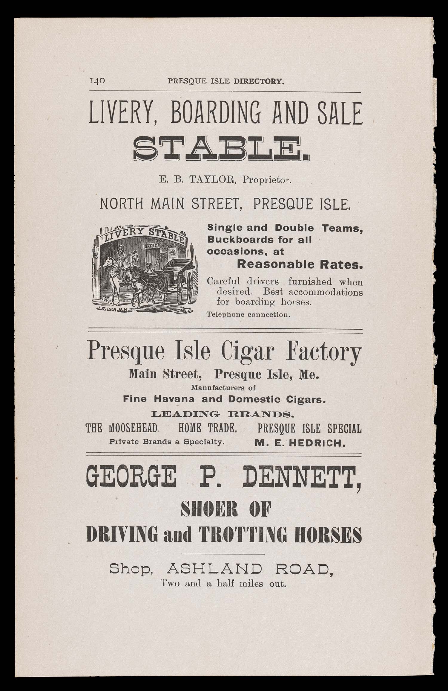 Name: The Presque Isle Directory. Text (advertisement) page 52