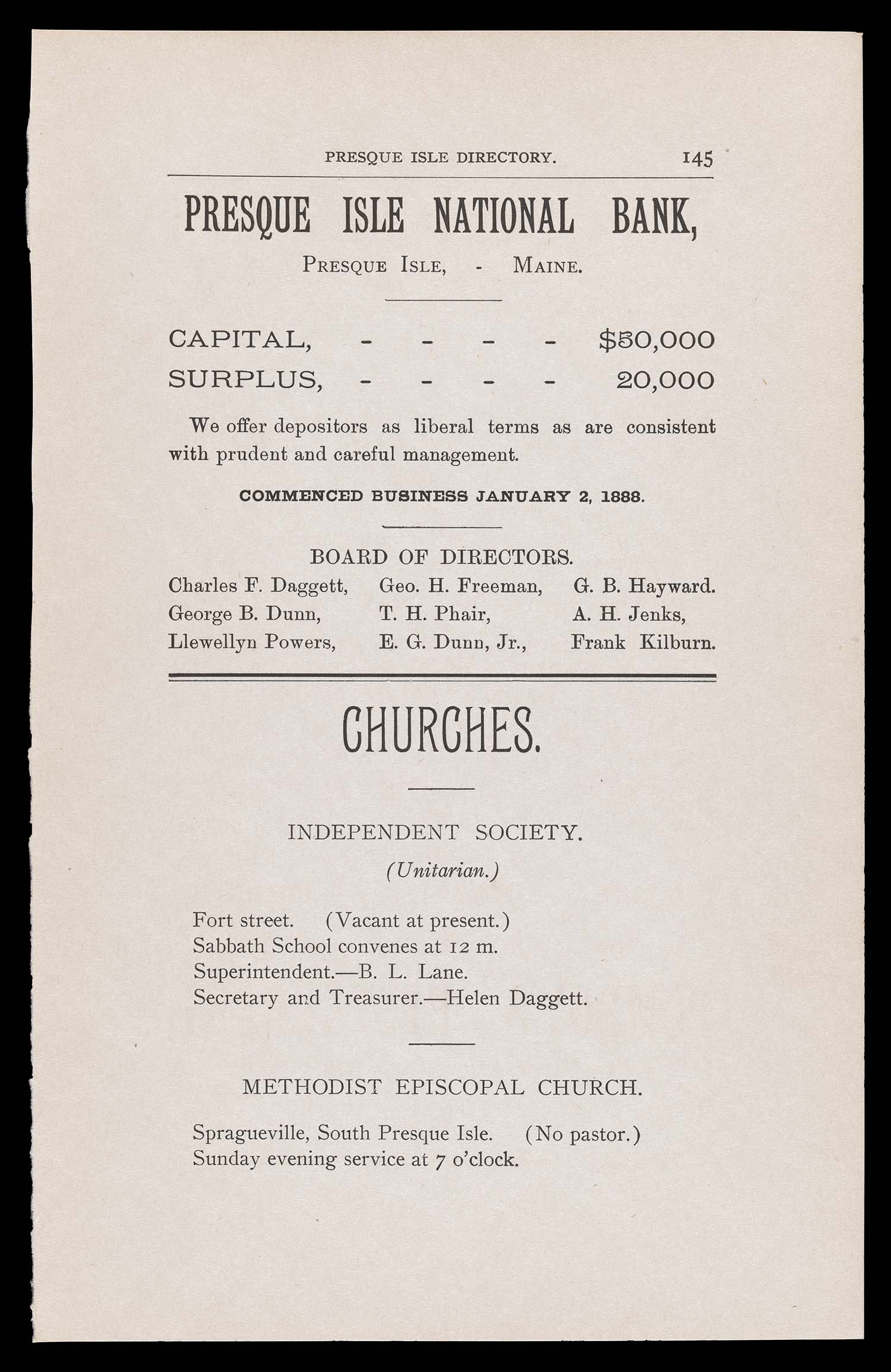 ↑ Parent: The Houlton directory, 1900 : a complete index to the residents, business, streets, etc. of the town of Houlton, Aroostook County, Maine with other useful information