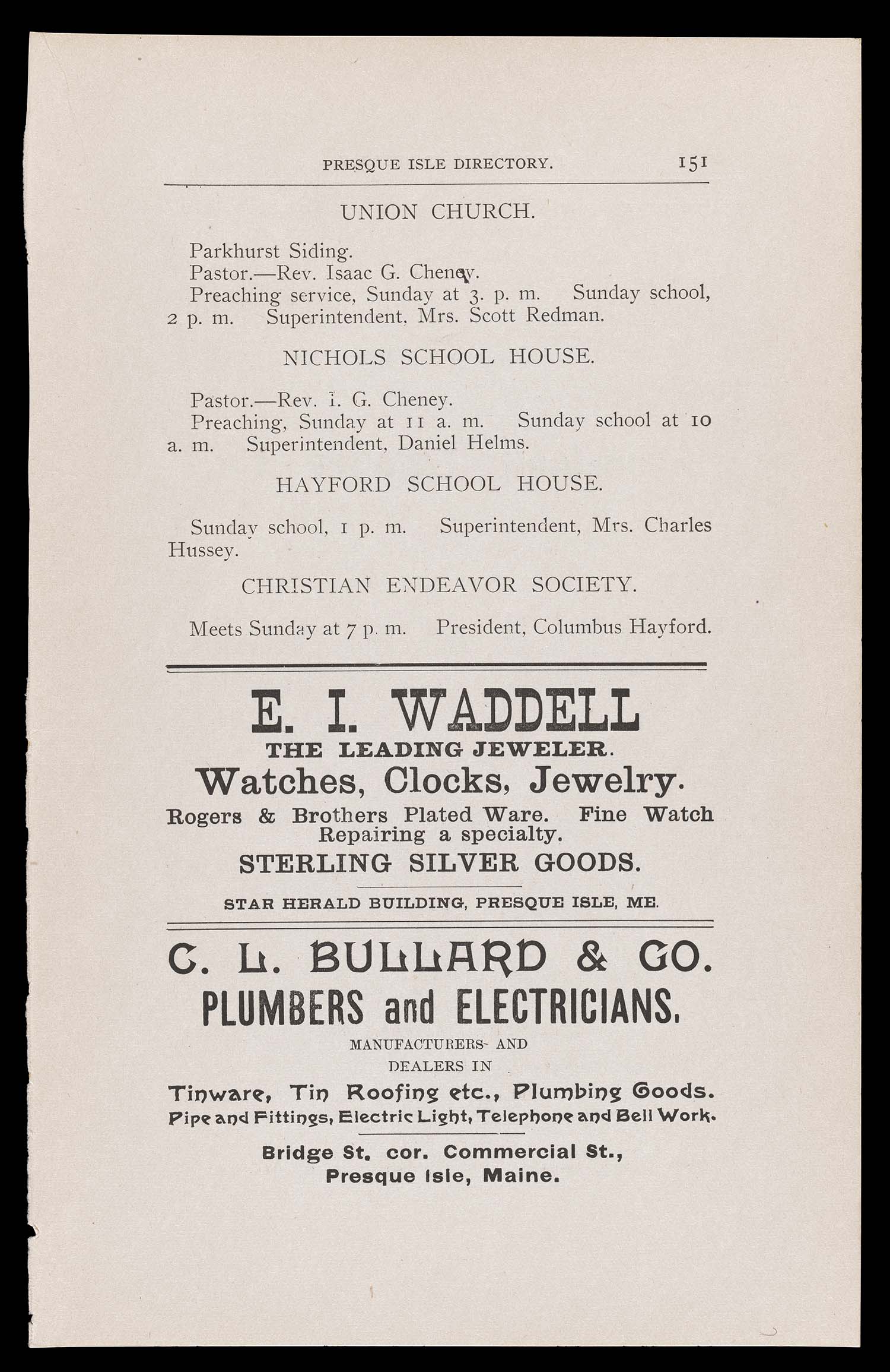 ↑ Parent: The Houlton directory, 1900 : a complete index to the residents, business, streets, etc. of the town of Houlton, Aroostook County, Maine with other useful information