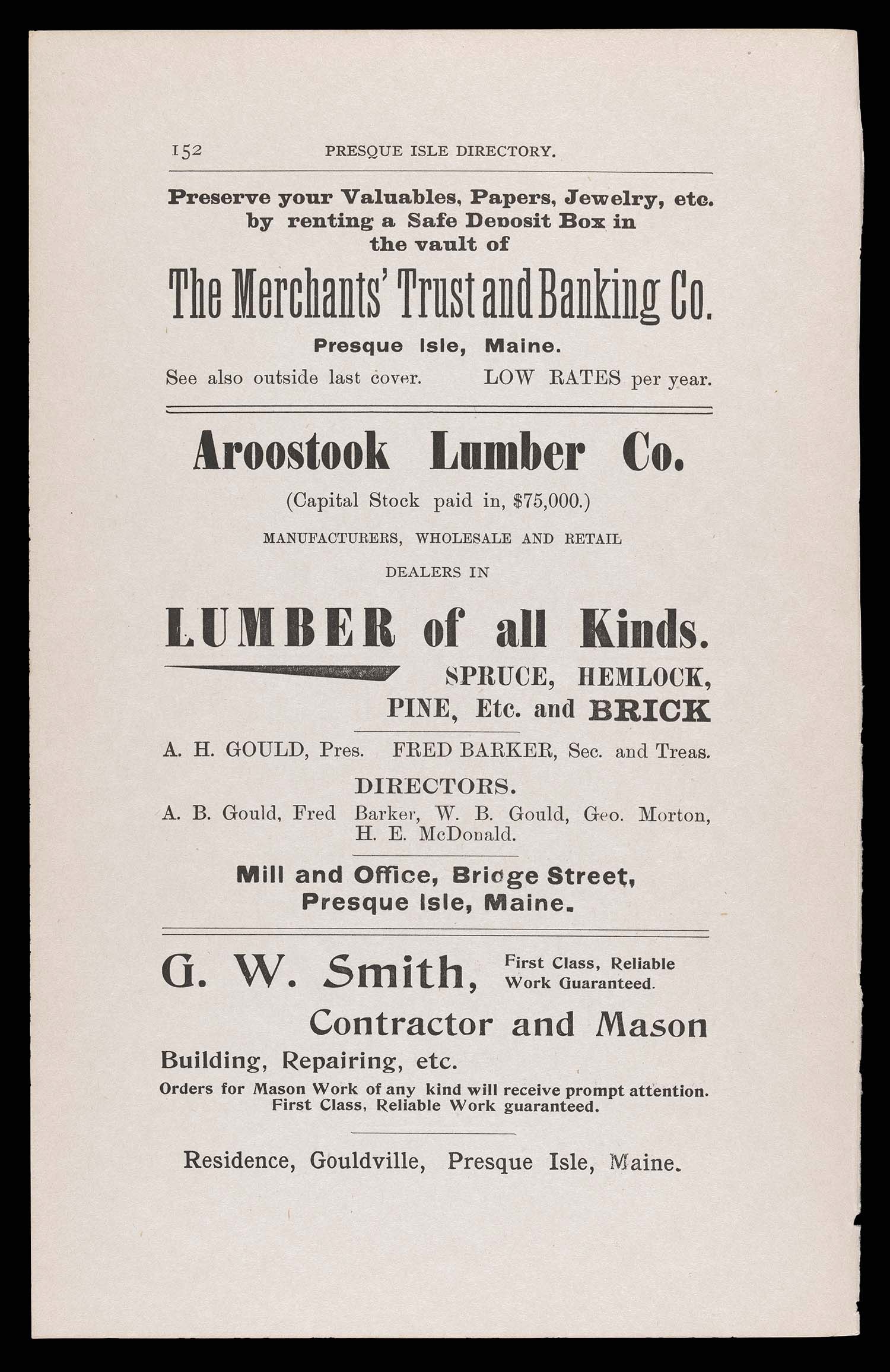 ↑ Parent: The Houlton directory, 1900 : a complete index to the residents, business, streets, etc. of the town of Houlton, Aroostook County, Maine with other useful information