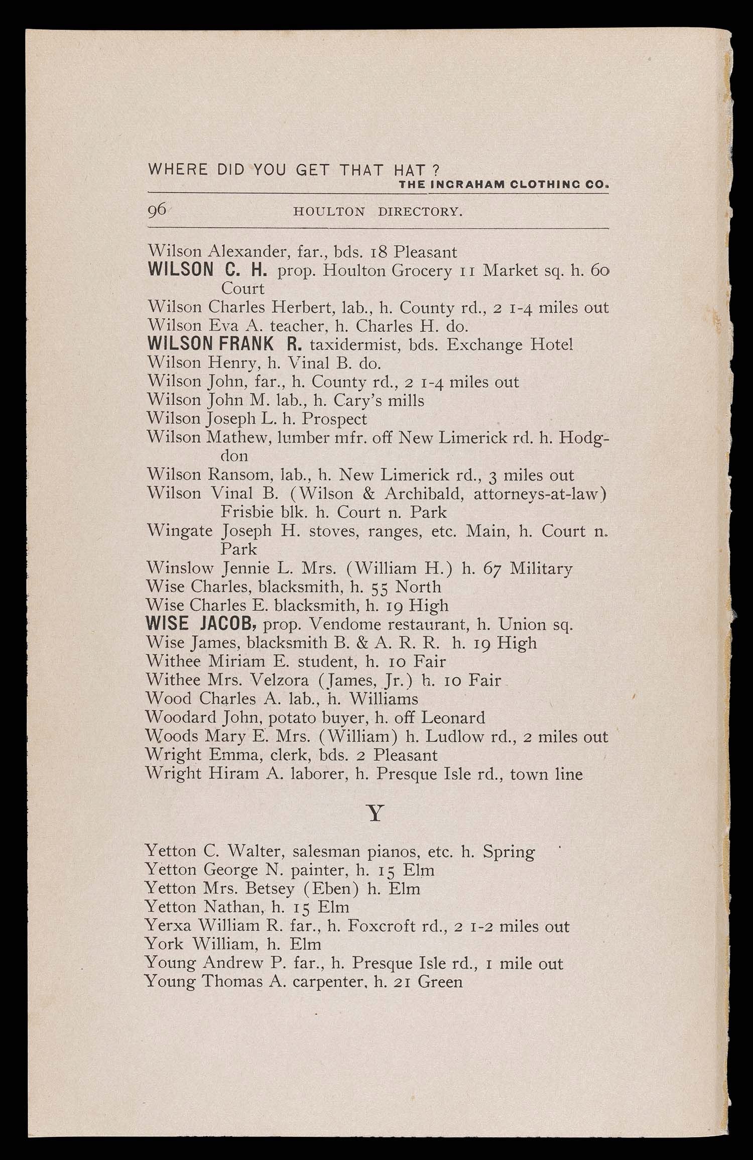 ↑ Parent: The Houlton directory, 1900 : a complete index to the residents, business, streets, etc. of the town of Houlton, Aroostook County, Maine with other useful information