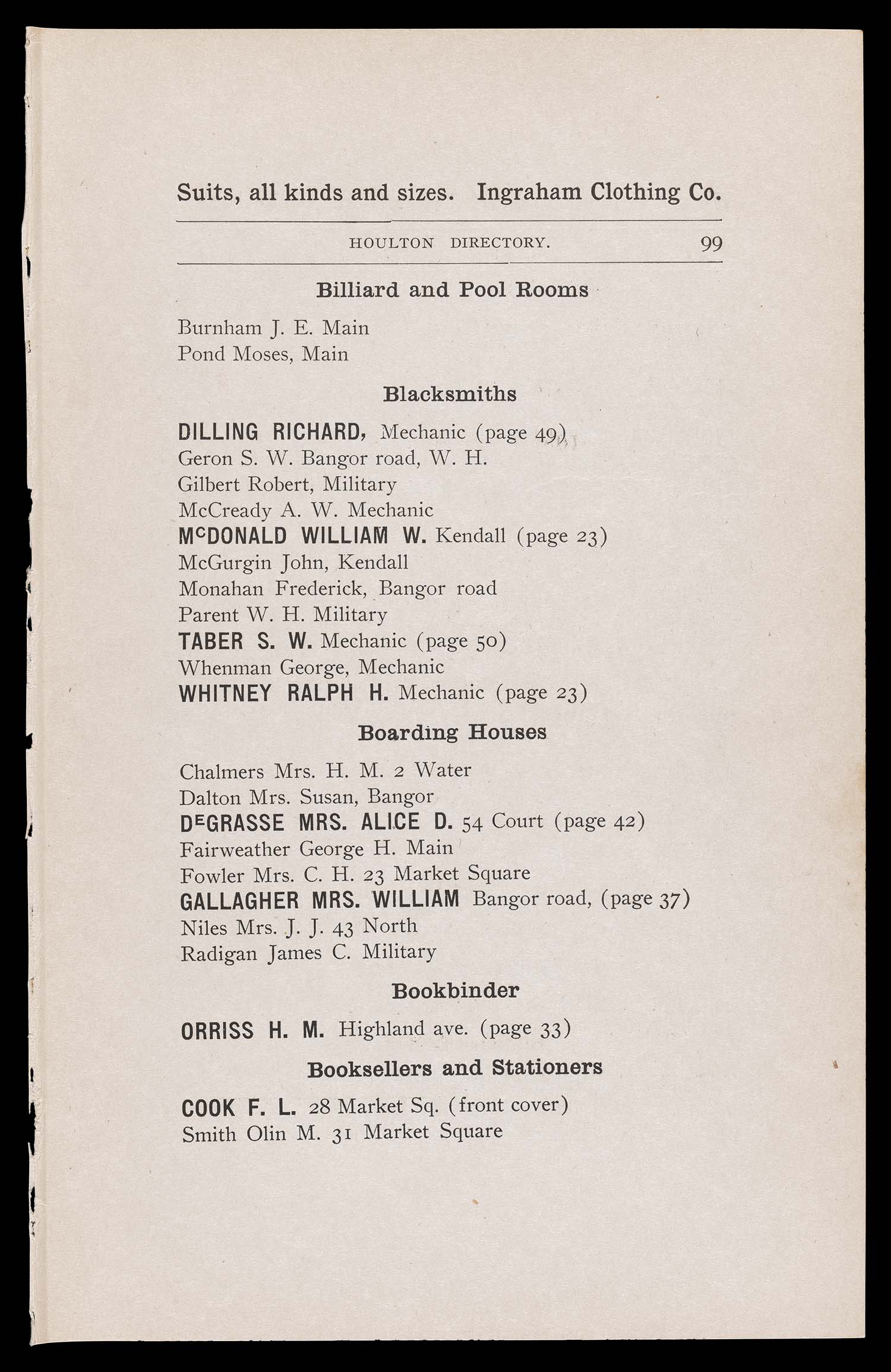 ↑ Parent: The Houlton directory, 1900 : a complete index to the residents, business, streets, etc. of the town of Houlton, Aroostook County, Maine with other useful information