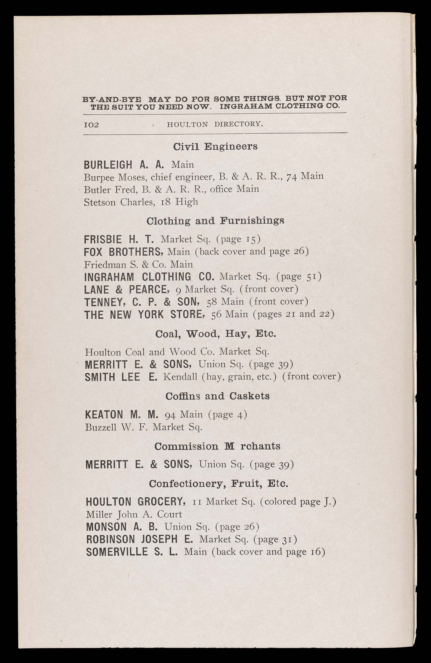 ↑ Parent: The Houlton directory, 1900 : a complete index to the residents, business, streets, etc. of the town of Houlton, Aroostook County, Maine with other useful information