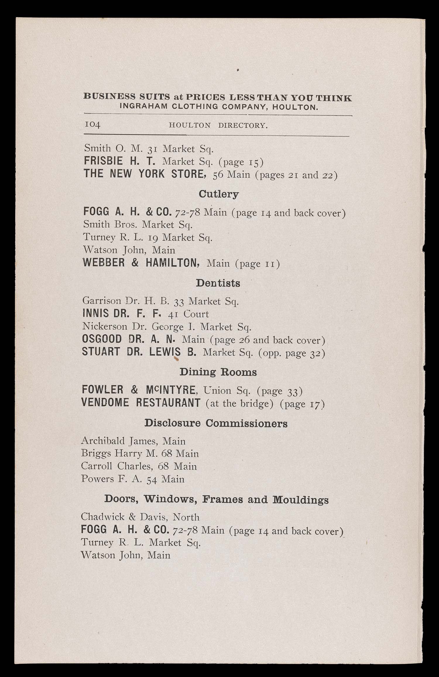 ↑ Parent: The Houlton directory, 1900 : a complete index to the residents, business, streets, etc. of the town of Houlton, Aroostook County, Maine with other useful information
