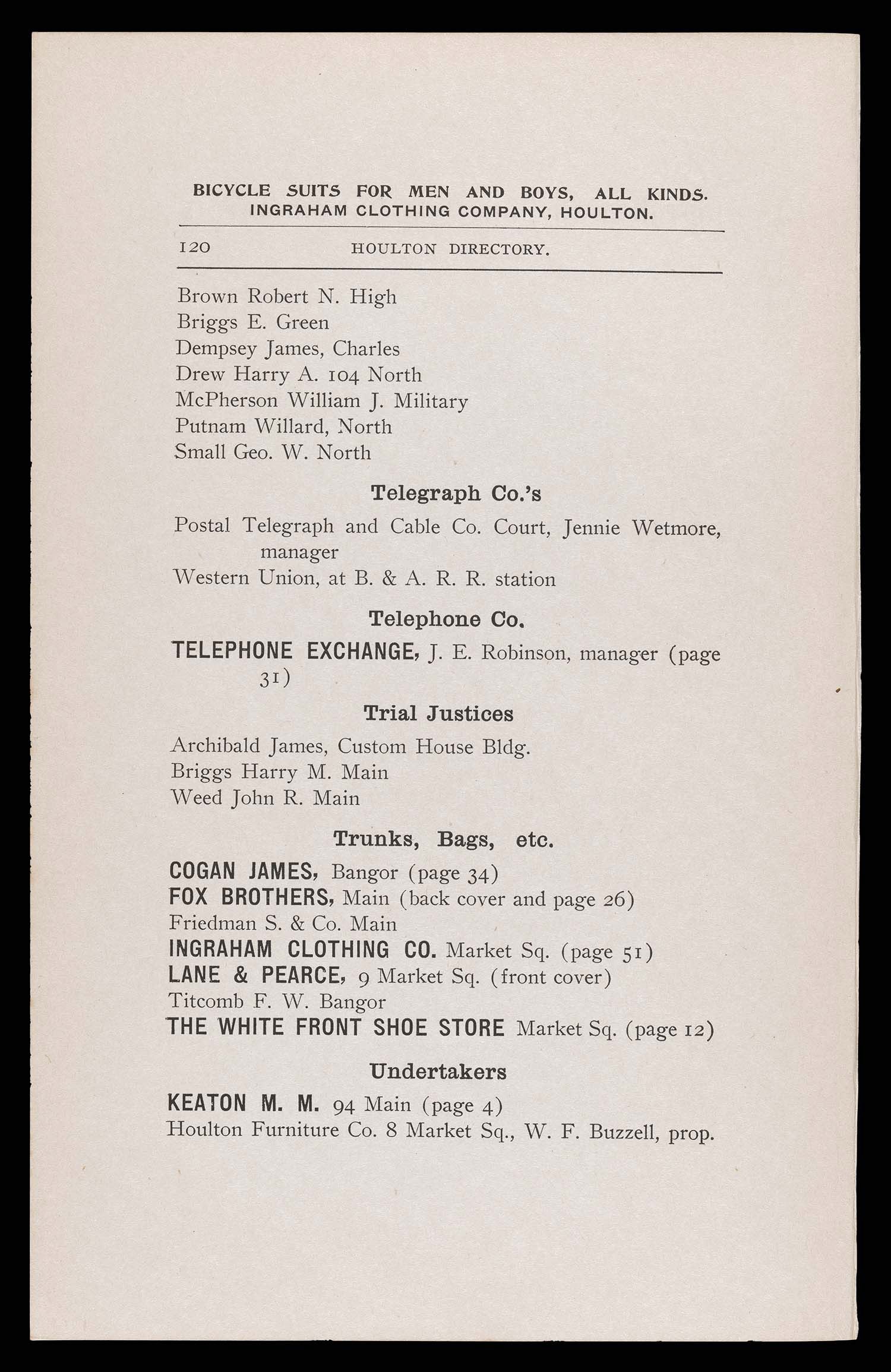 ↑ Parent: The Houlton directory, 1900 : a complete index to the residents, business, streets, etc. of the town of Houlton, Aroostook County, Maine with other useful information