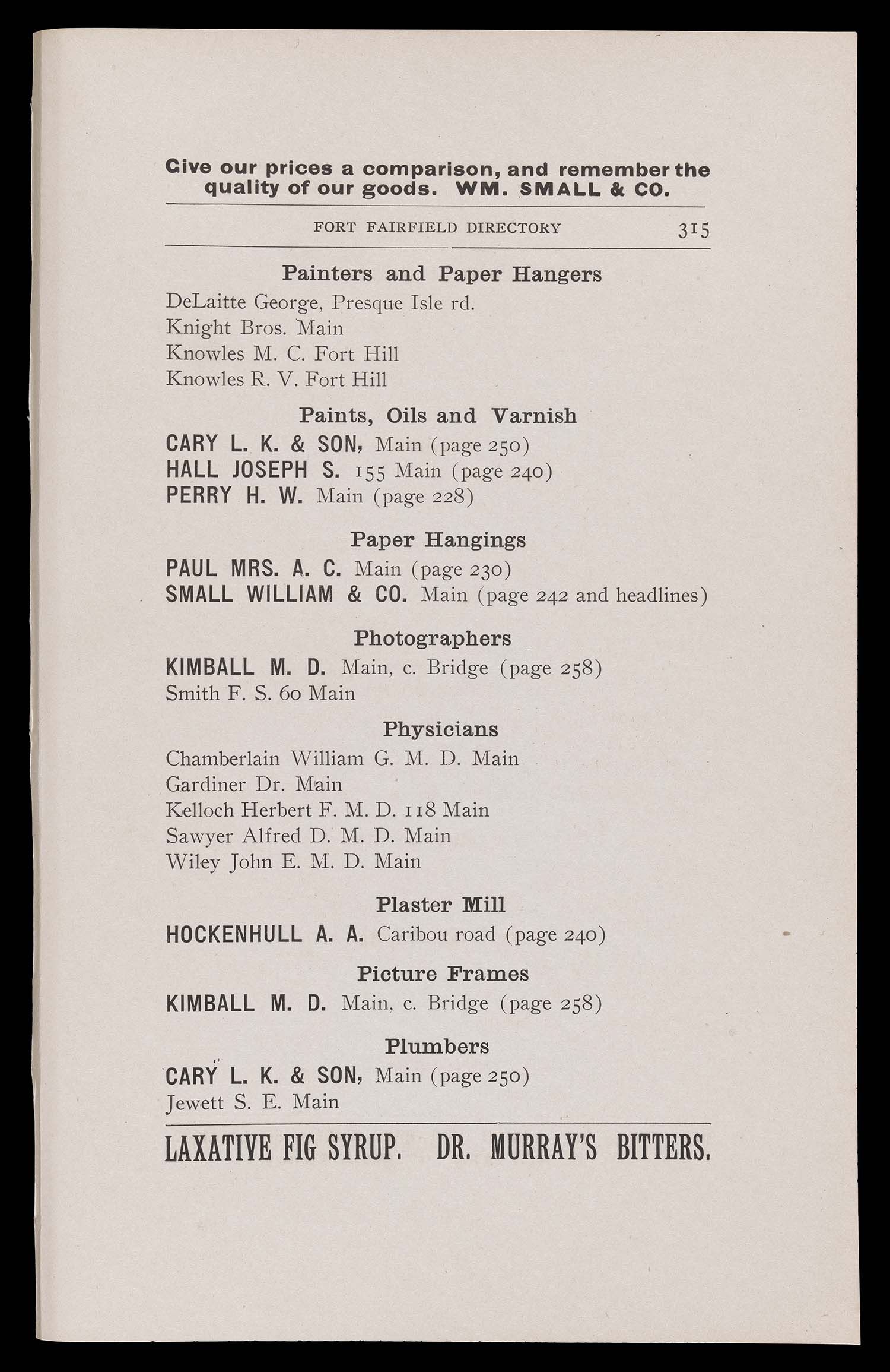 ↑ Parent: The Houlton directory, 1900 : a complete index to the residents, business, streets, etc. of the town of Houlton, Aroostook County, Maine with other useful information