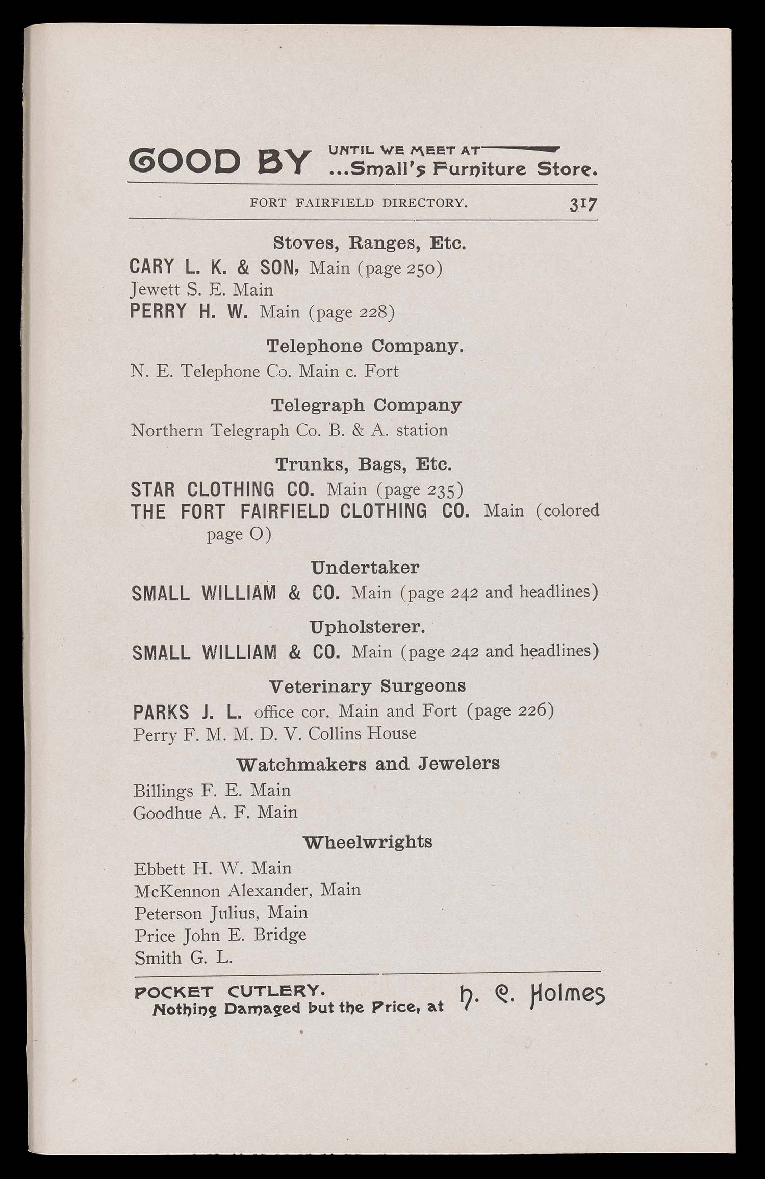 ↑ Parent: The Houlton directory, 1900 : a complete index to the residents, business, streets, etc. of the town of Houlton, Aroostook County, Maine with other useful information