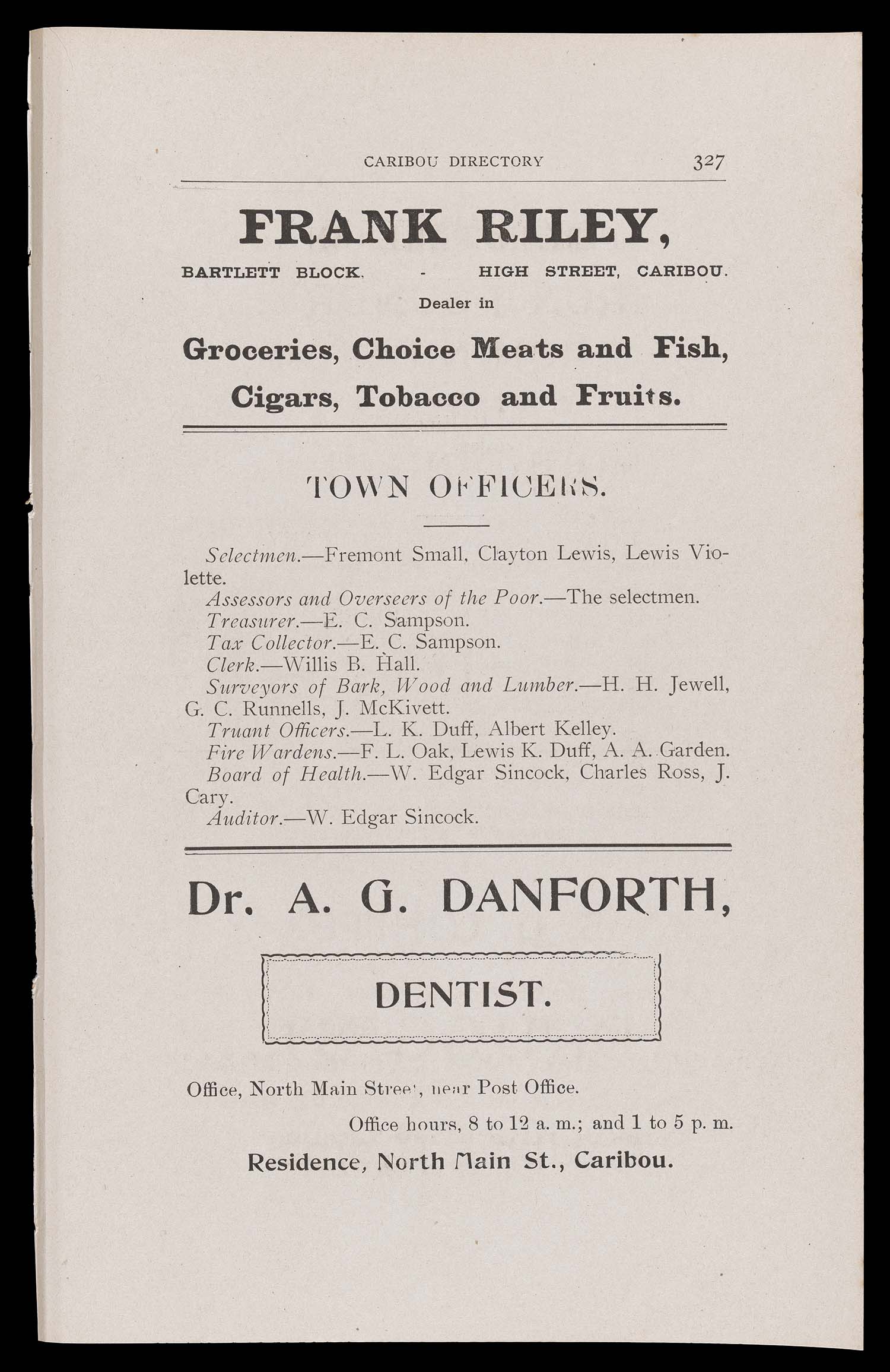 ↑ Parent: The Houlton directory, 1900 : a complete index to the residents, business, streets, etc. of the town of Houlton, Aroostook County, Maine with other useful information