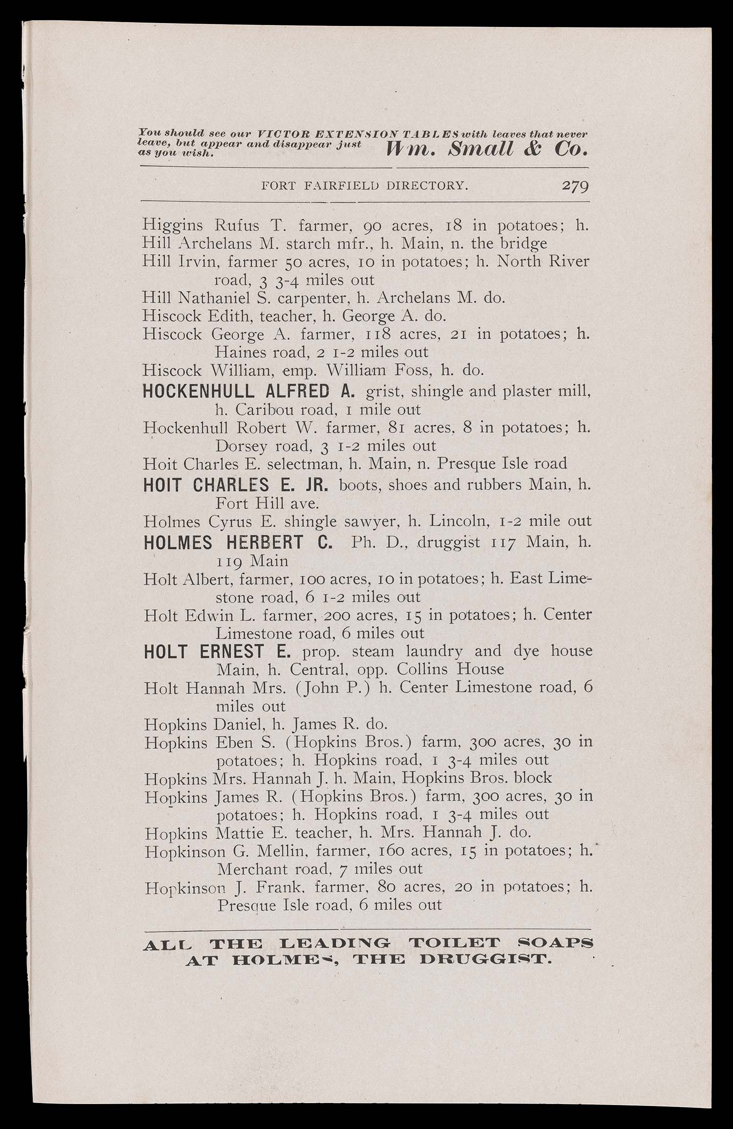 ↑ Parent: The Houlton directory, 1900 : a complete index to the residents, business, streets, etc. of the town of Houlton, Aroostook County, Maine with other useful information