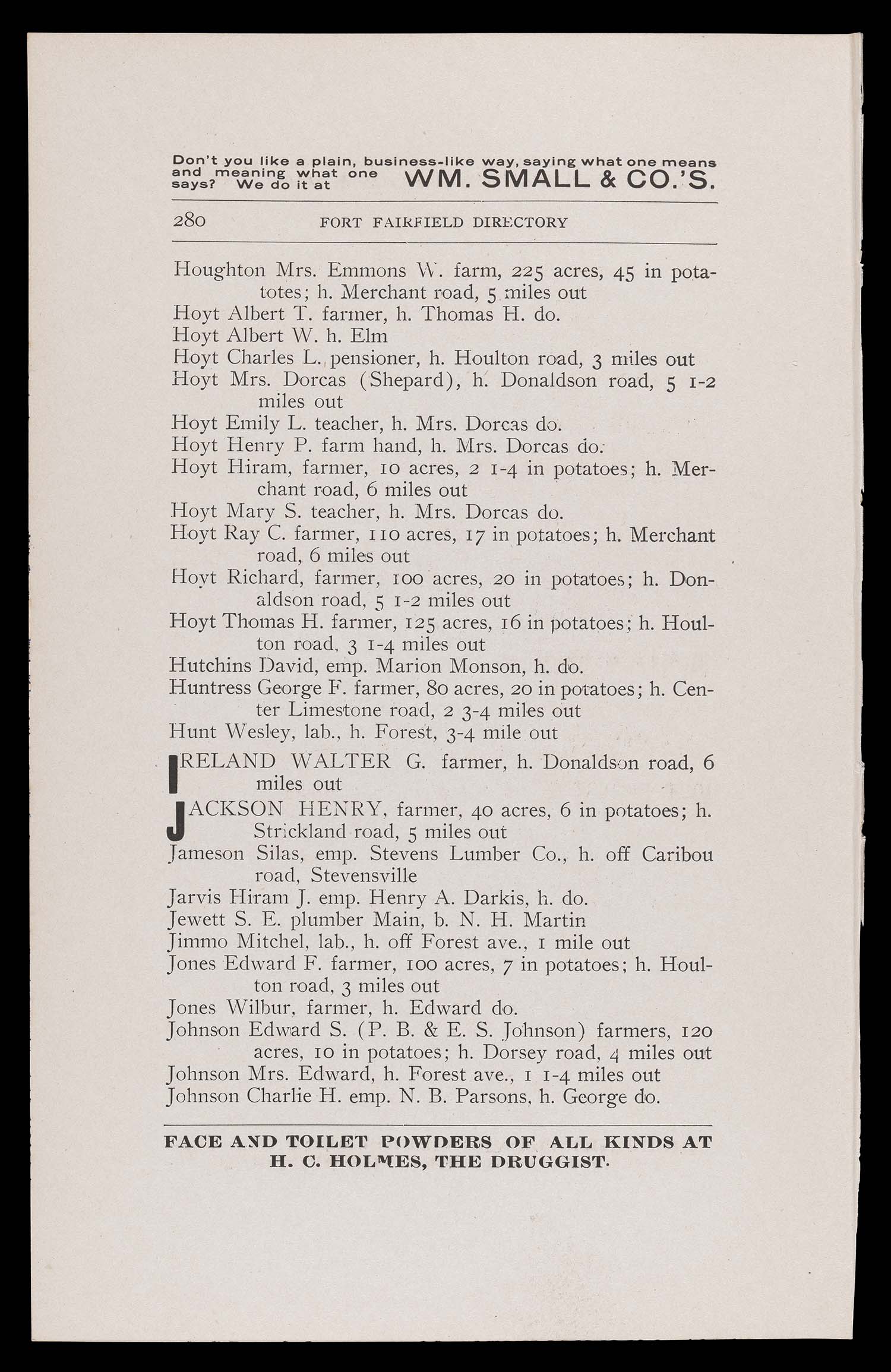 ↑ Parent: The Houlton directory, 1900 : a complete index to the residents, business, streets, etc. of the town of Houlton, Aroostook County, Maine with other useful information