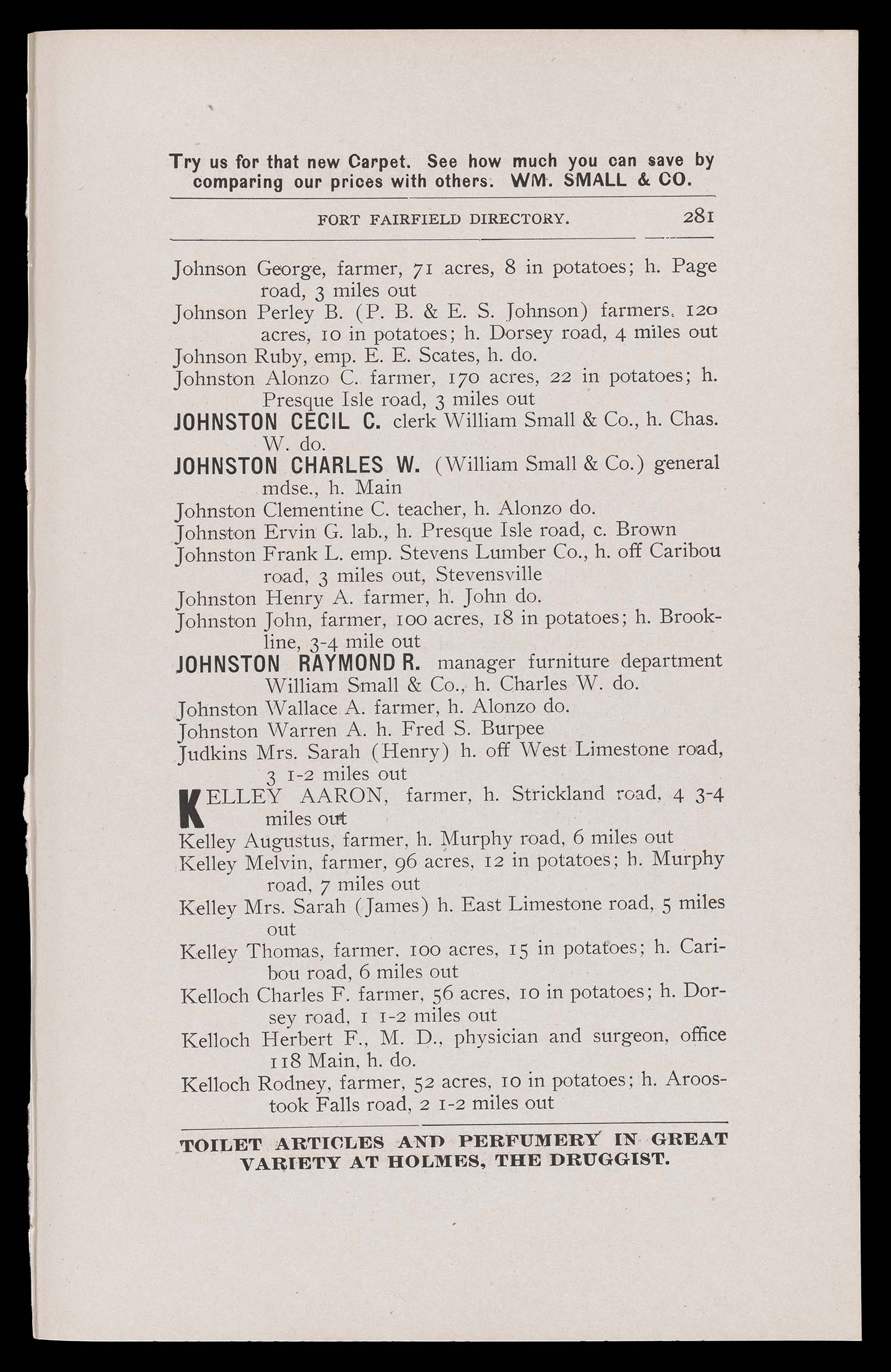 ↑ Parent: The Houlton directory, 1900 : a complete index to the residents, business, streets, etc. of the town of Houlton, Aroostook County, Maine with other useful information
