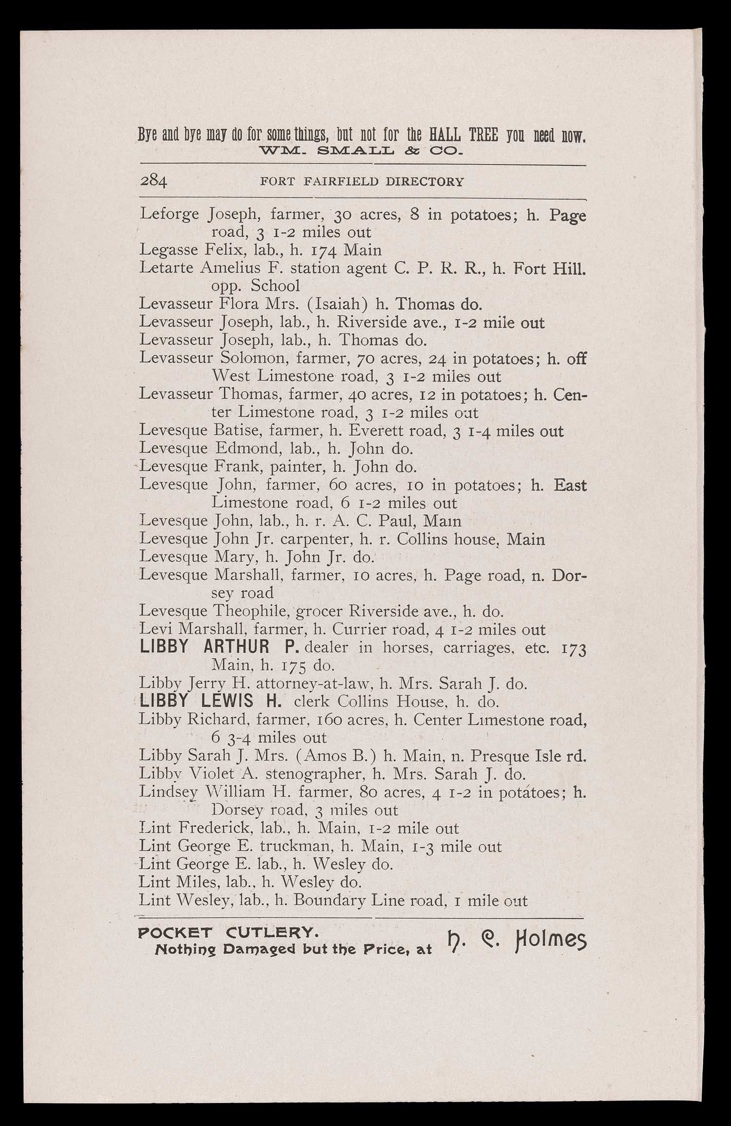 ↑ Parent: The Houlton directory, 1900 : a complete index to the residents, business, streets, etc. of the town of Houlton, Aroostook County, Maine with other useful information
