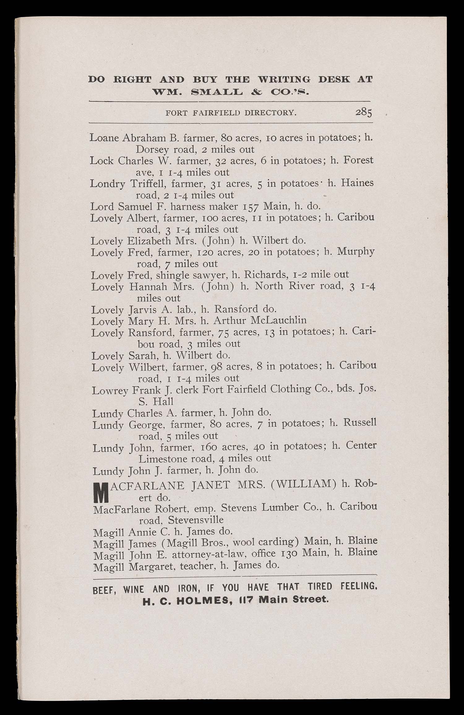 ↑ Parent: The Houlton directory, 1900 : a complete index to the residents, business, streets, etc. of the town of Houlton, Aroostook County, Maine with other useful information